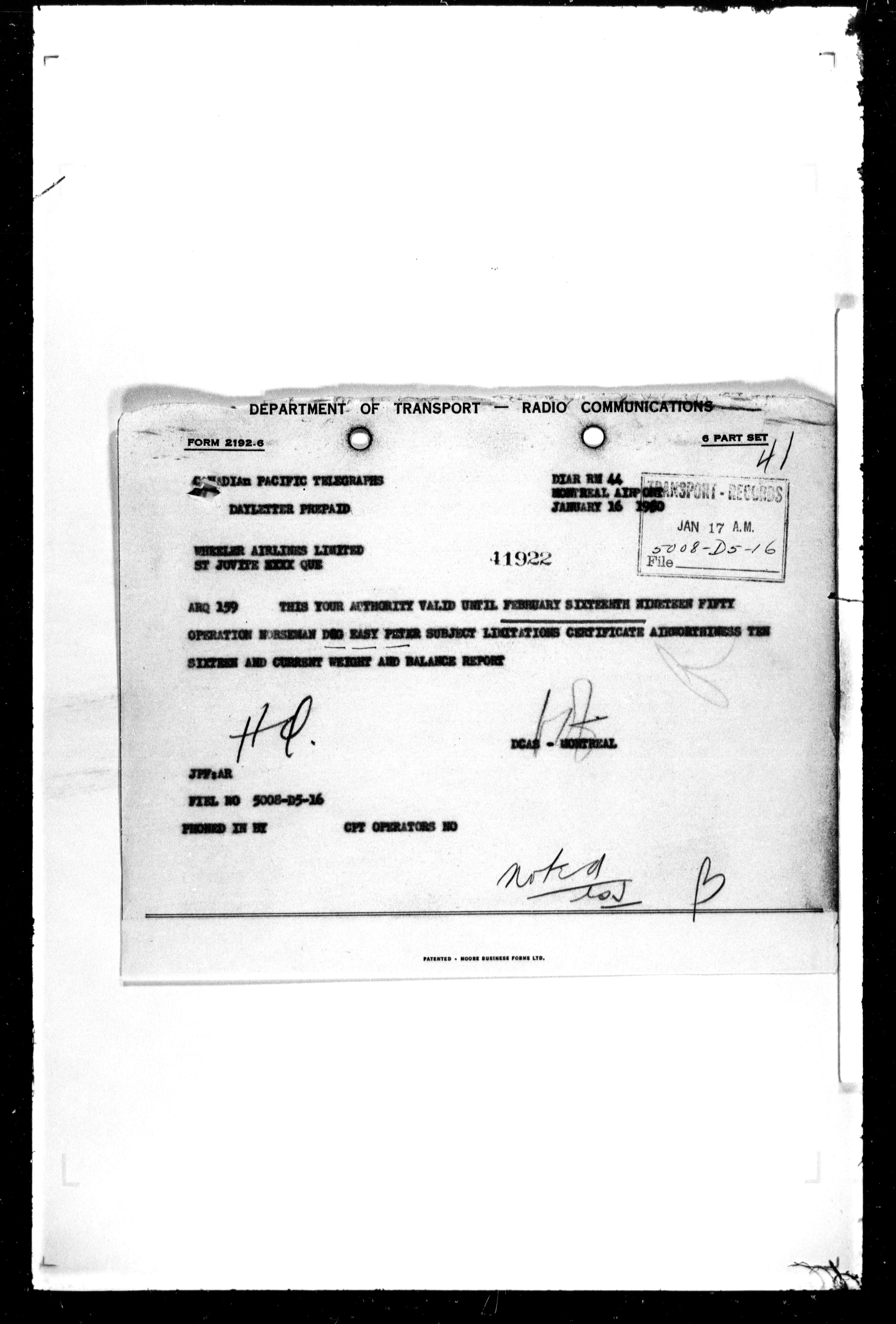 Department of Transport : Civil aircraft registration, inspection and operation files, block 5008, 1920-1986 - 7491