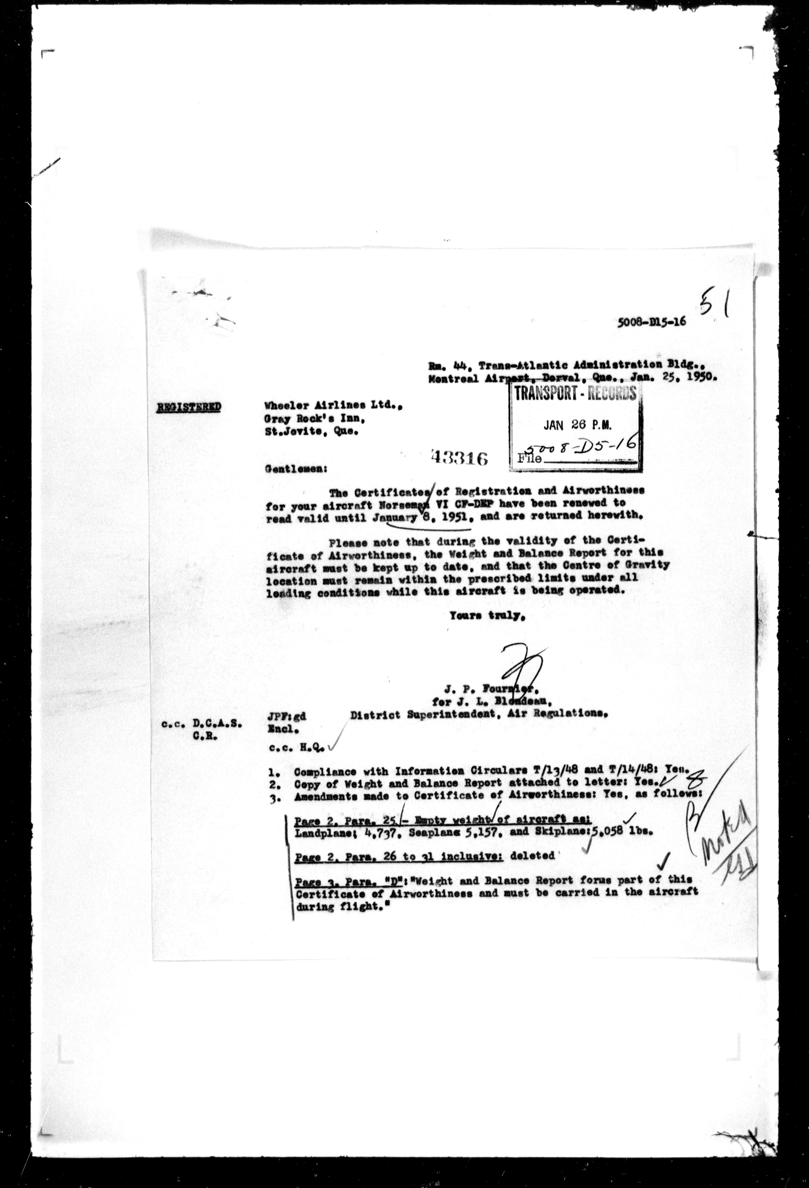 Department of Transport : Civil aircraft registration, inspection and operation files, block 5008, 1920-1986 - 7491