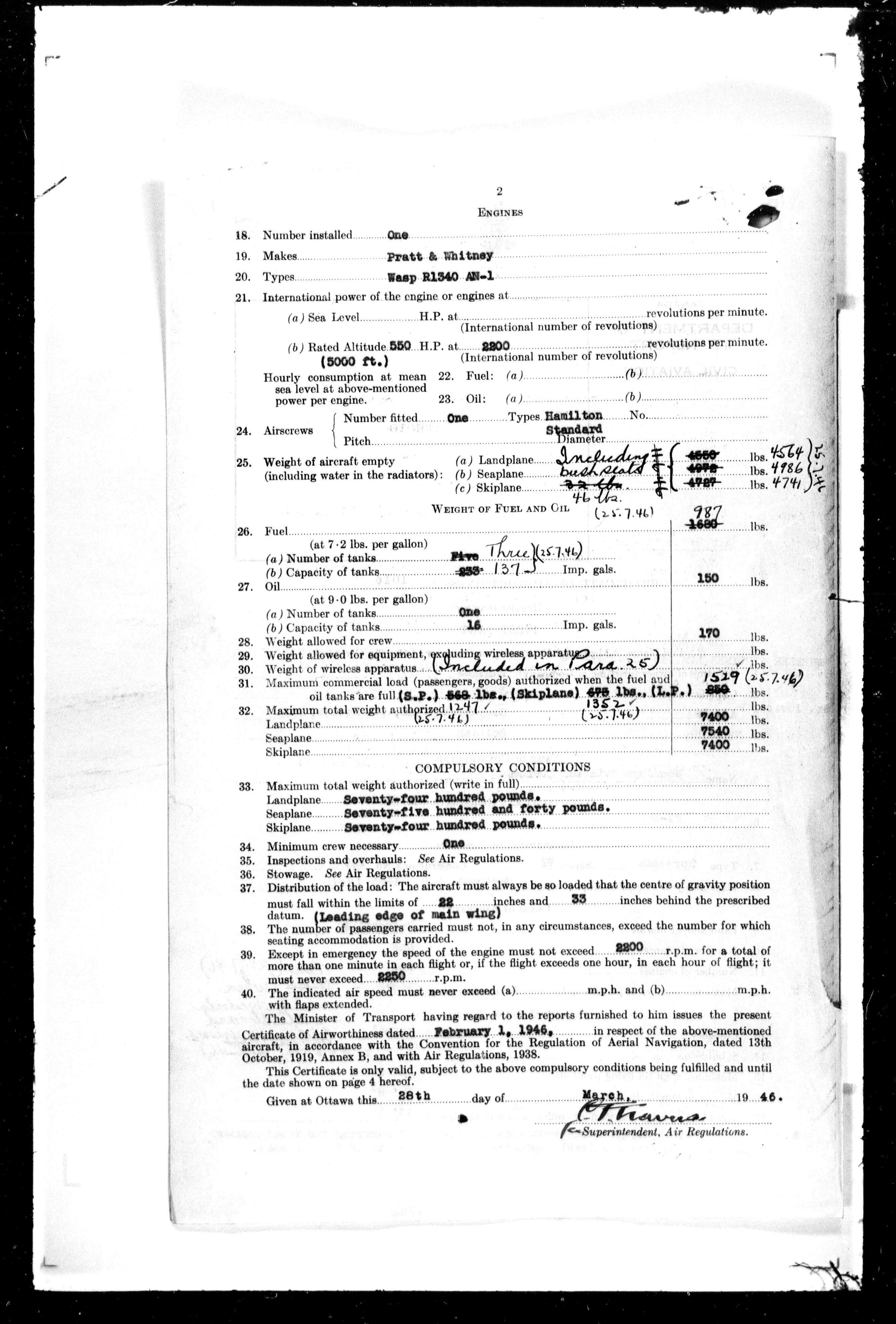 Department of Transport : Civil aircraft registration, inspection and operation files, block 5008, 1920-1986 - 7491