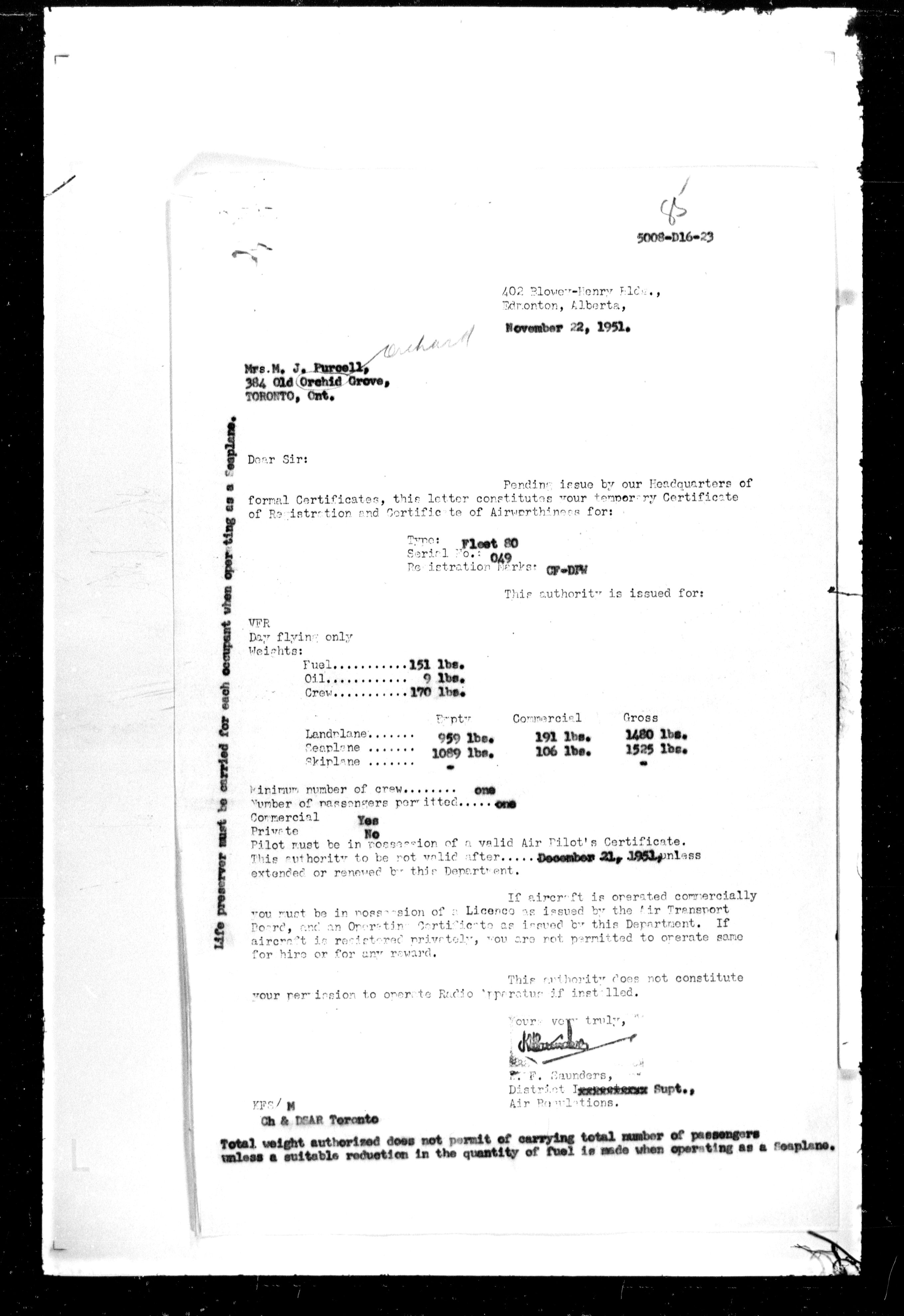 Department of Transport : Civil aircraft registration, inspection and operation files, block 5008, 1920-1986 - 7492