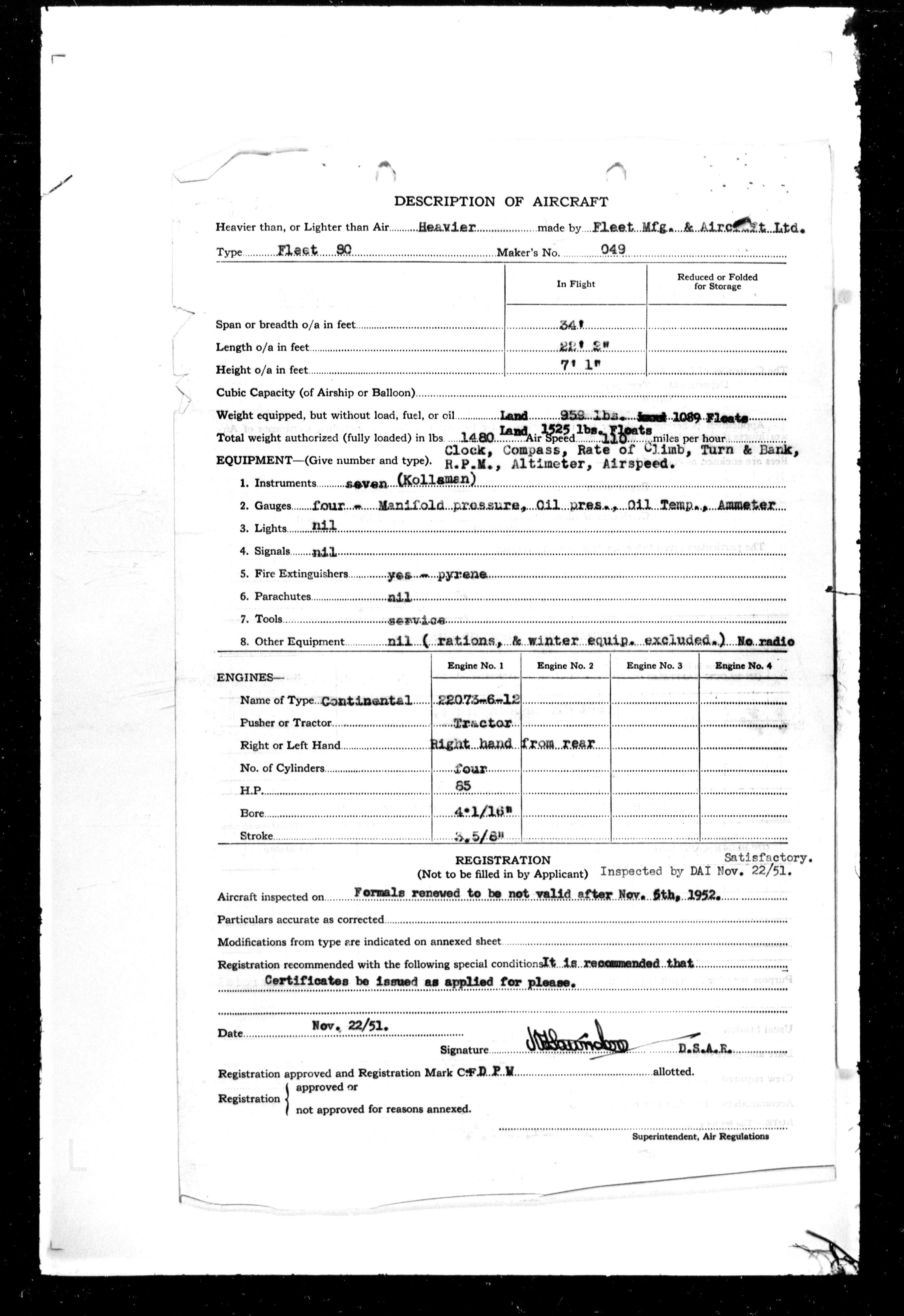 Department of Transport : Civil aircraft registration, inspection and operation files, block 5008, 1920-1986 - 7492