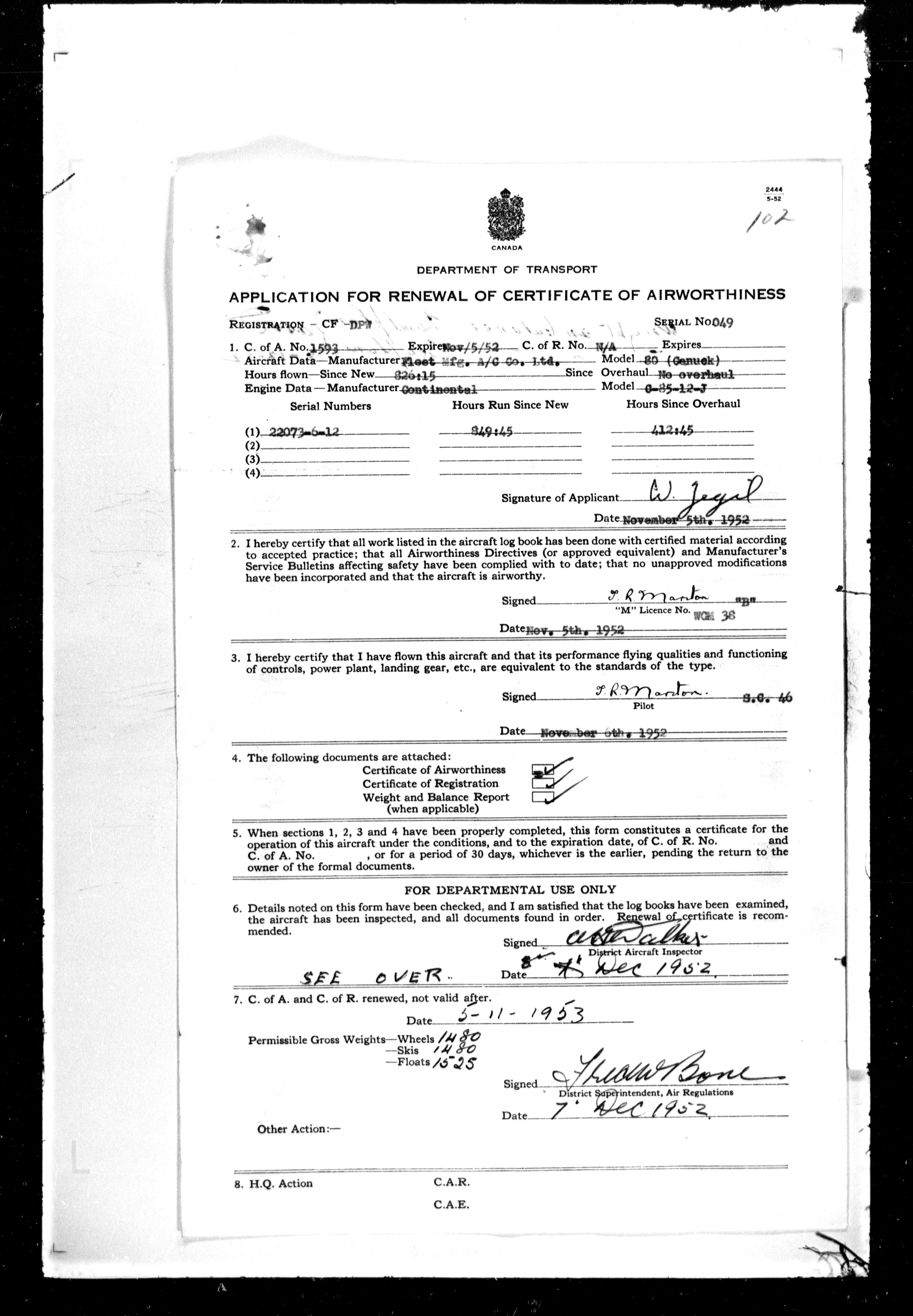 Department of Transport : Civil aircraft registration, inspection and operation files, block 5008, 1920-1986 - 7492