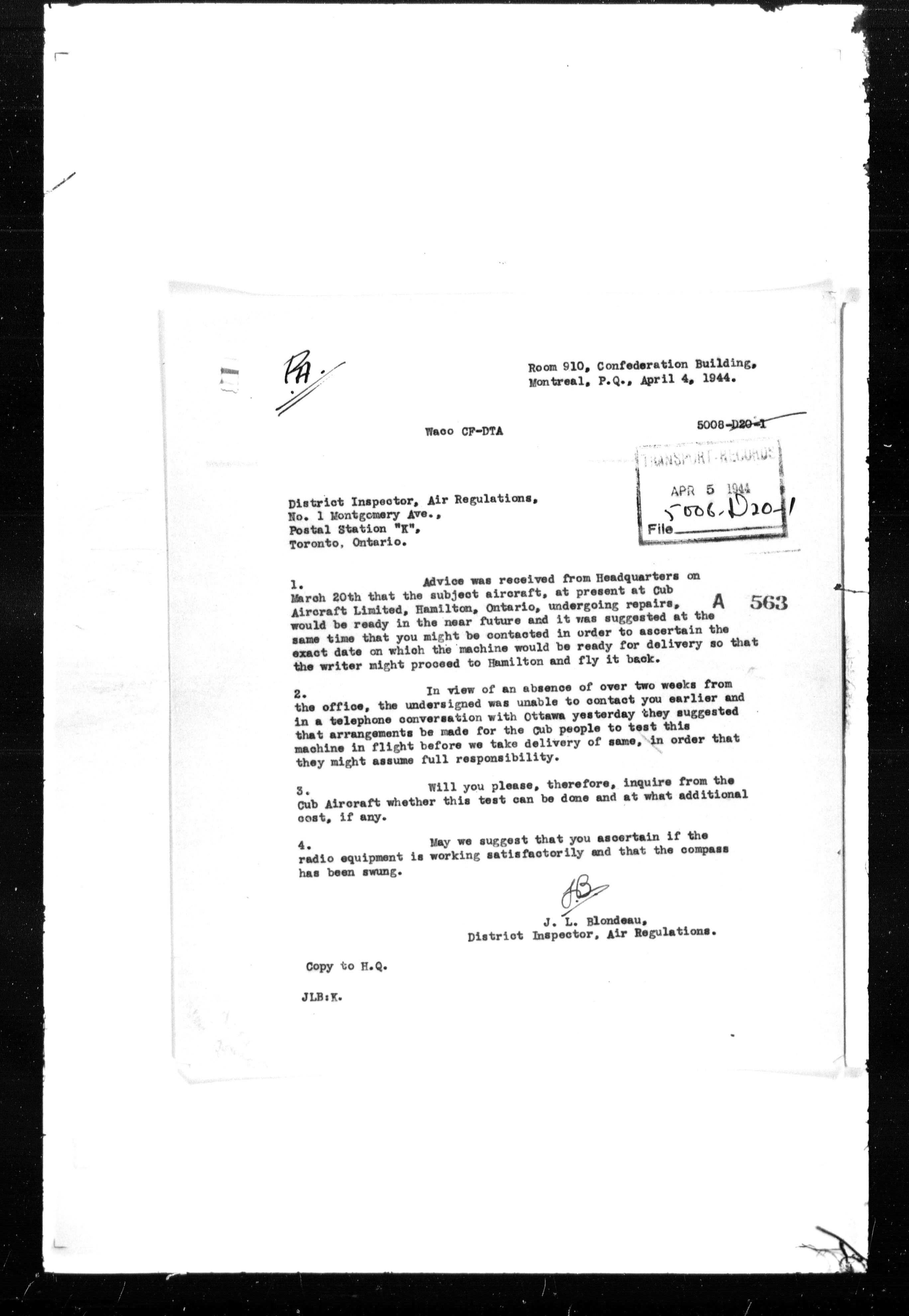 Department of Transport : Civil aircraft registration, inspection and operation files, block 5008, 1920-1986 - 7493