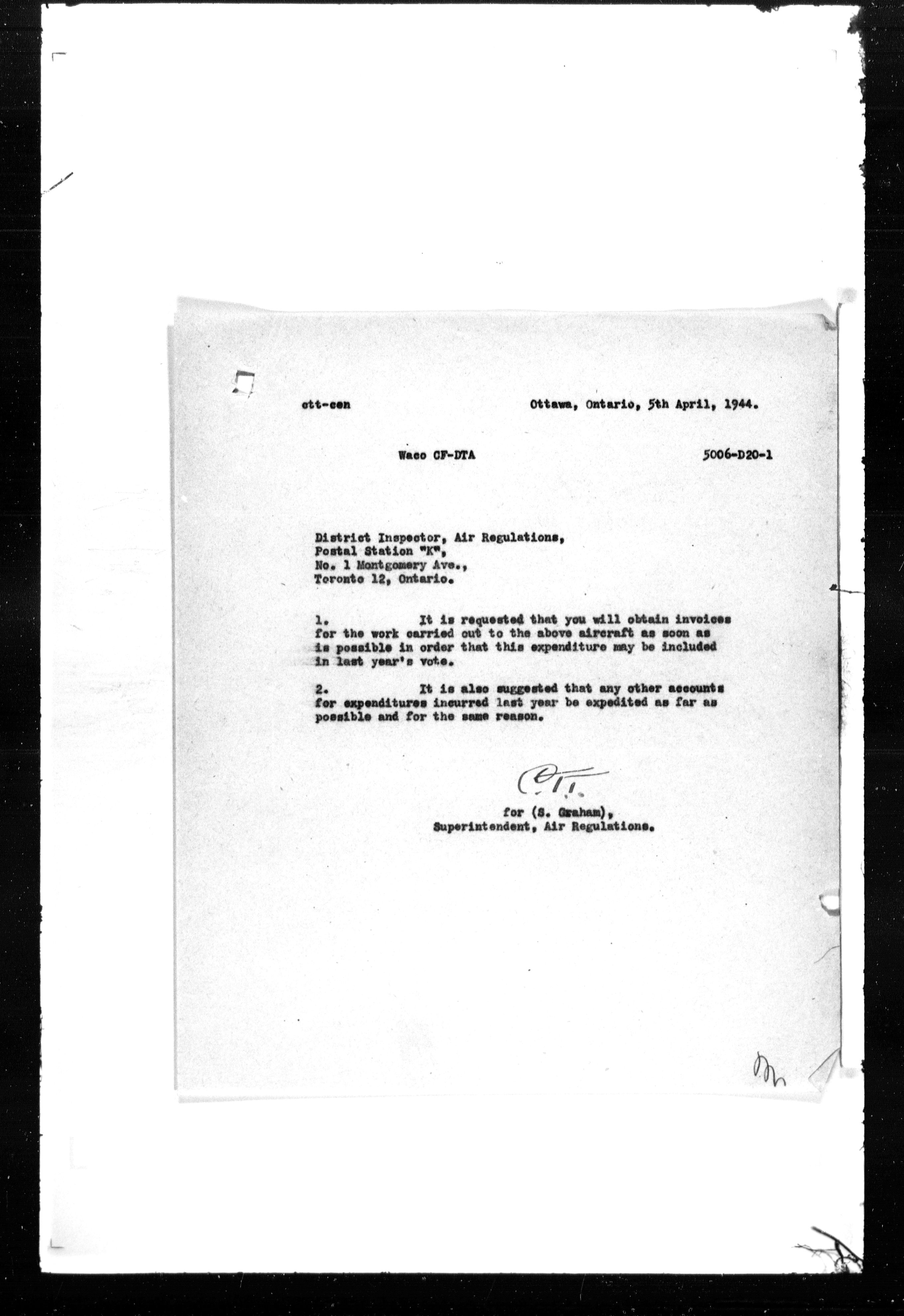 Department of Transport : Civil aircraft registration, inspection and operation files, block 5008, 1920-1986 - 7493