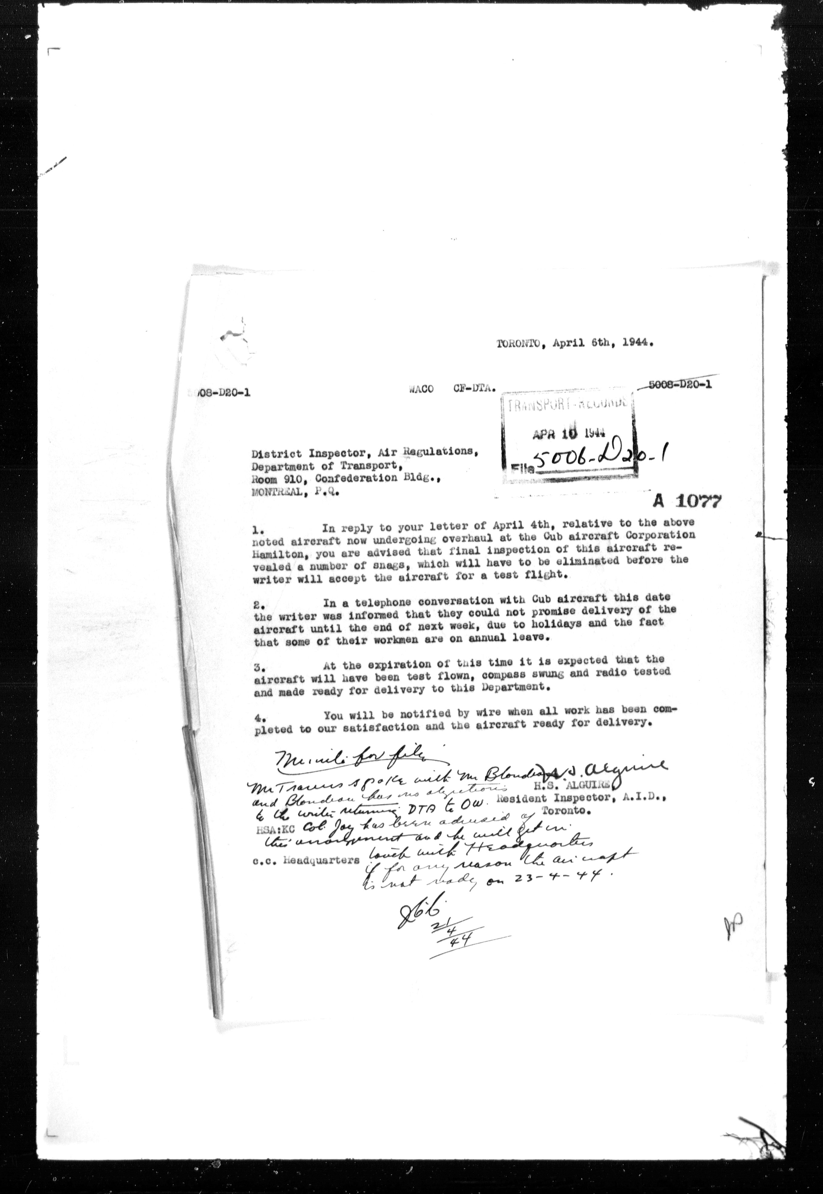 Department of Transport : Civil aircraft registration, inspection and operation files, block 5008, 1920-1986 - 7493