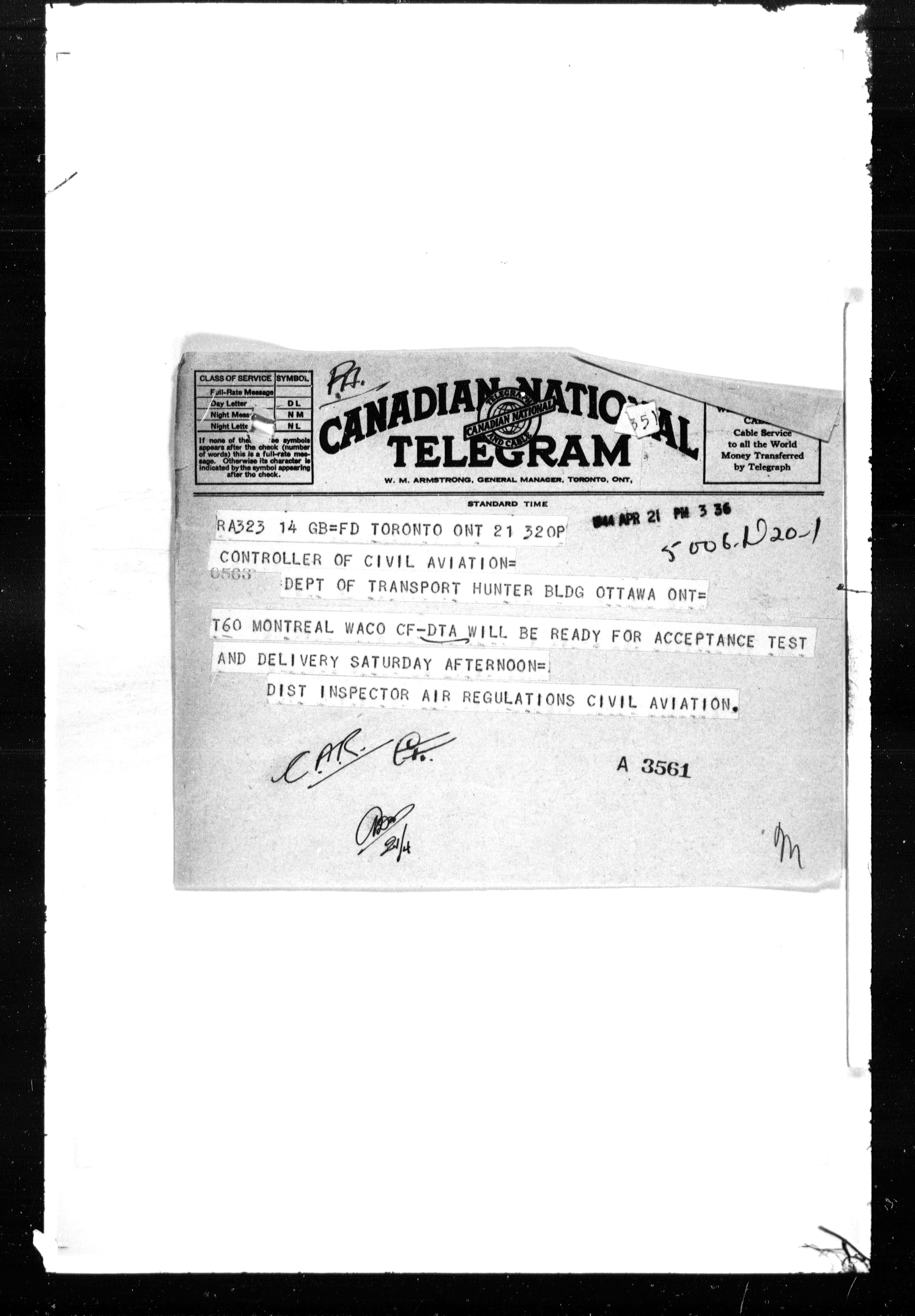 Department of Transport : Civil aircraft registration, inspection and operation files, block 5008, 1920-1986 - 7493