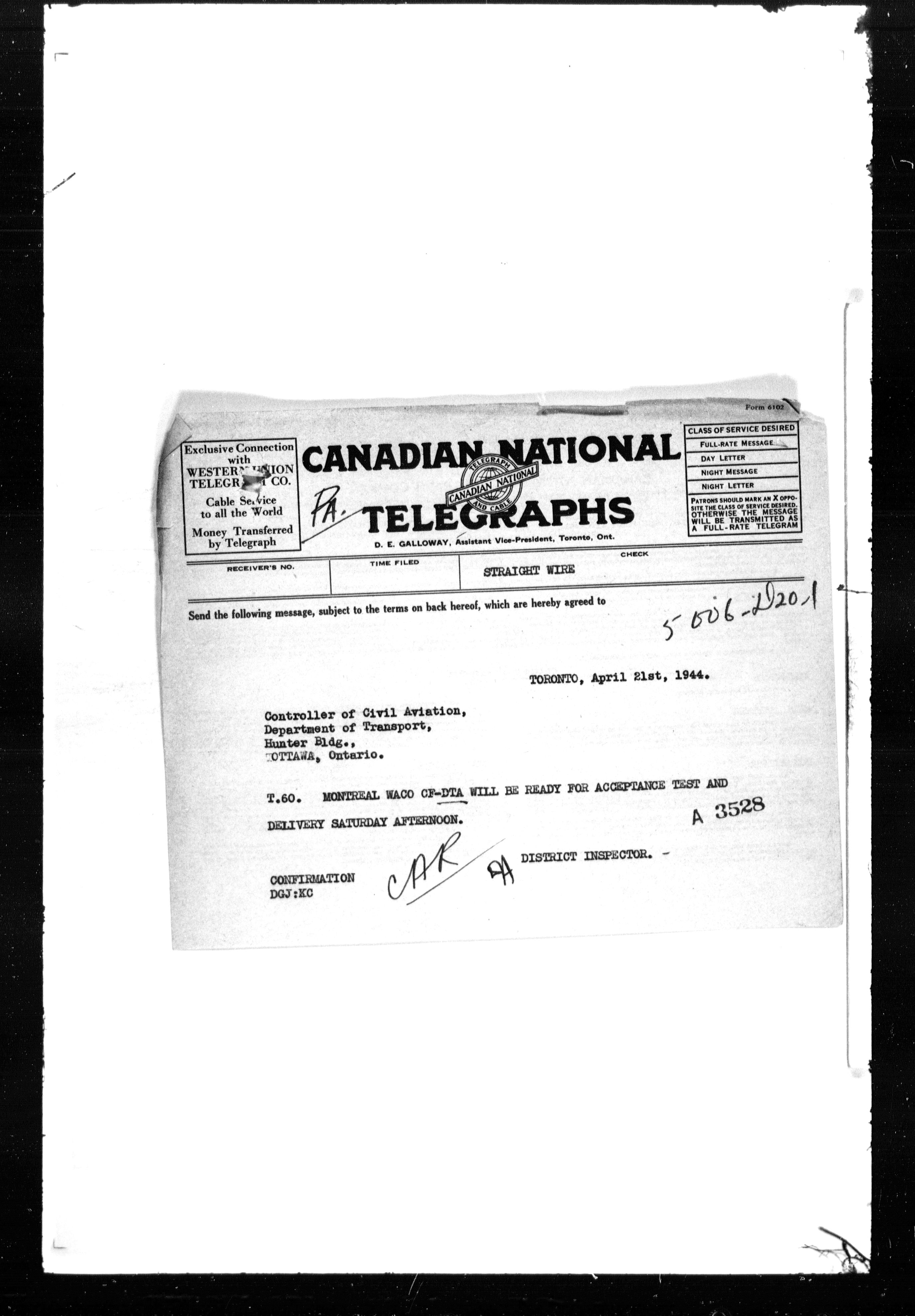 Department of Transport : Civil aircraft registration, inspection and operation files, block 5008, 1920-1986 - 7493