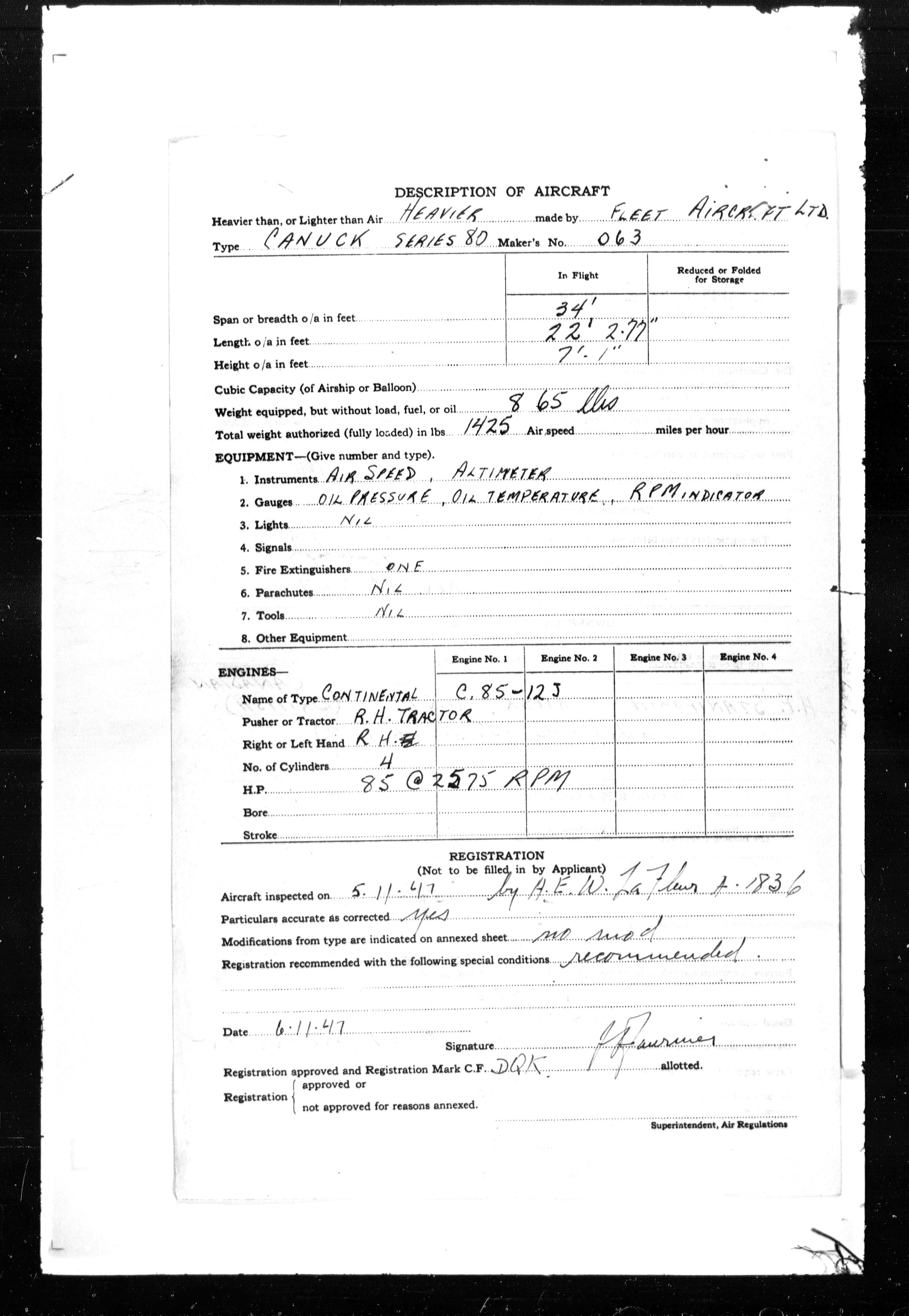 Department of Transport : Civil aircraft registration, inspection and operation files, block 5008, 1920-1986 - 7493