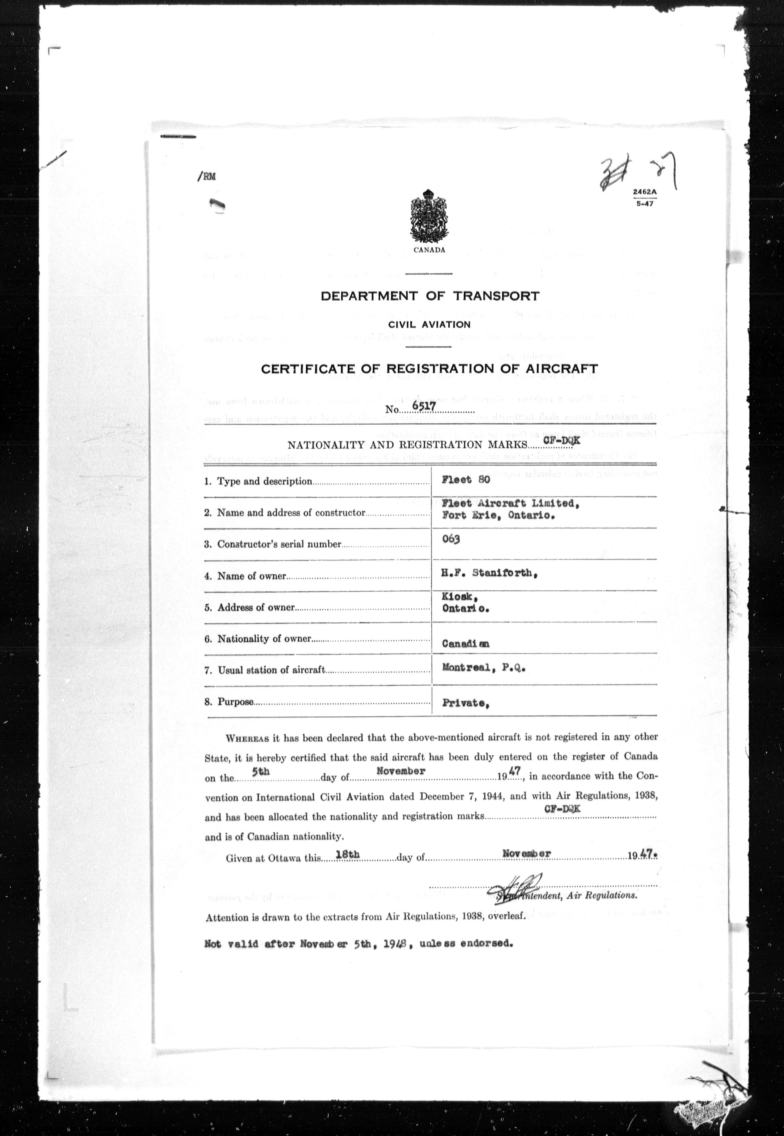 Department of Transport : Civil aircraft registration, inspection and operation files, block 5008, 1920-1986 - 7493