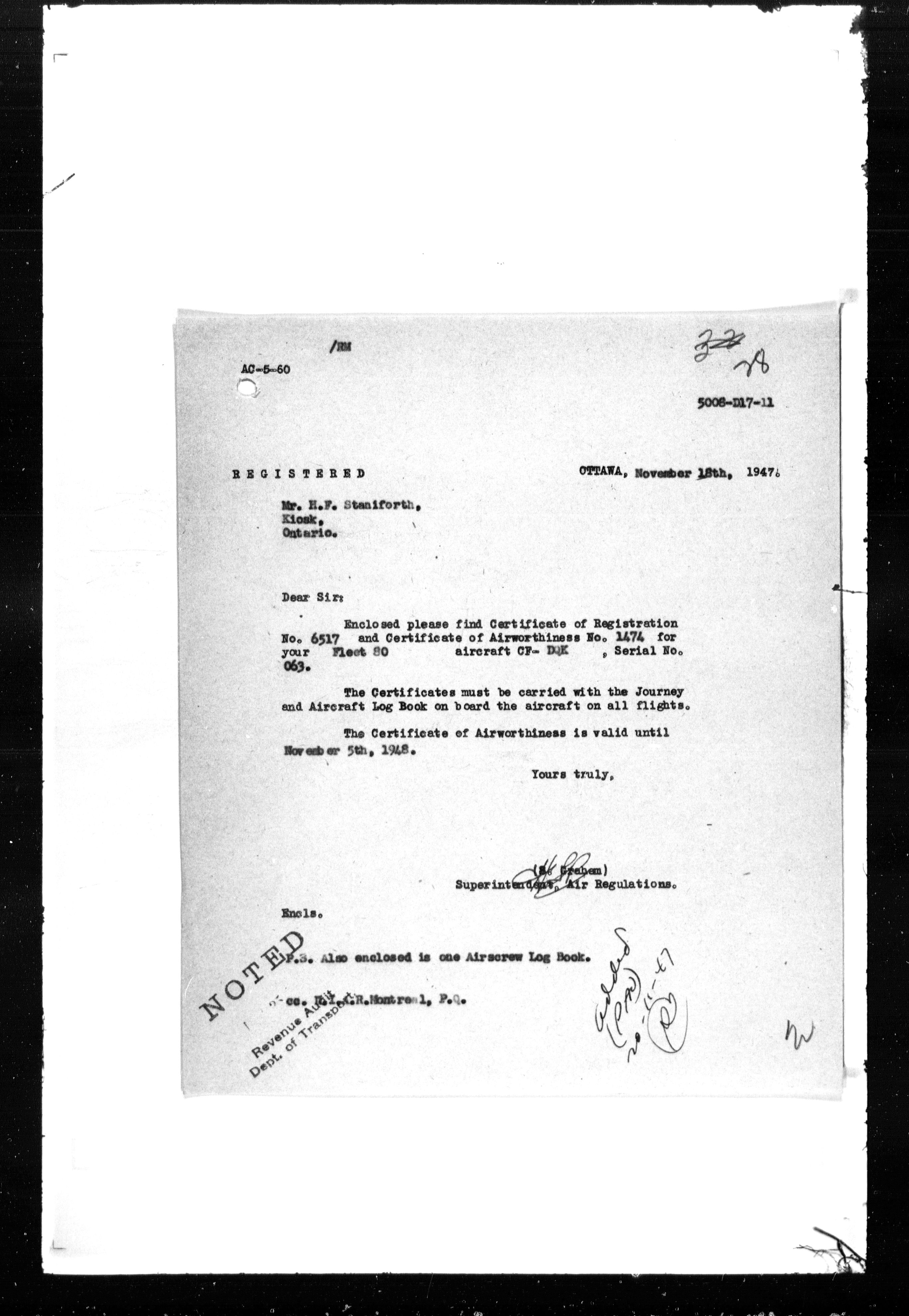Department of Transport : Civil aircraft registration, inspection and operation files, block 5008, 1920-1986 - 7493