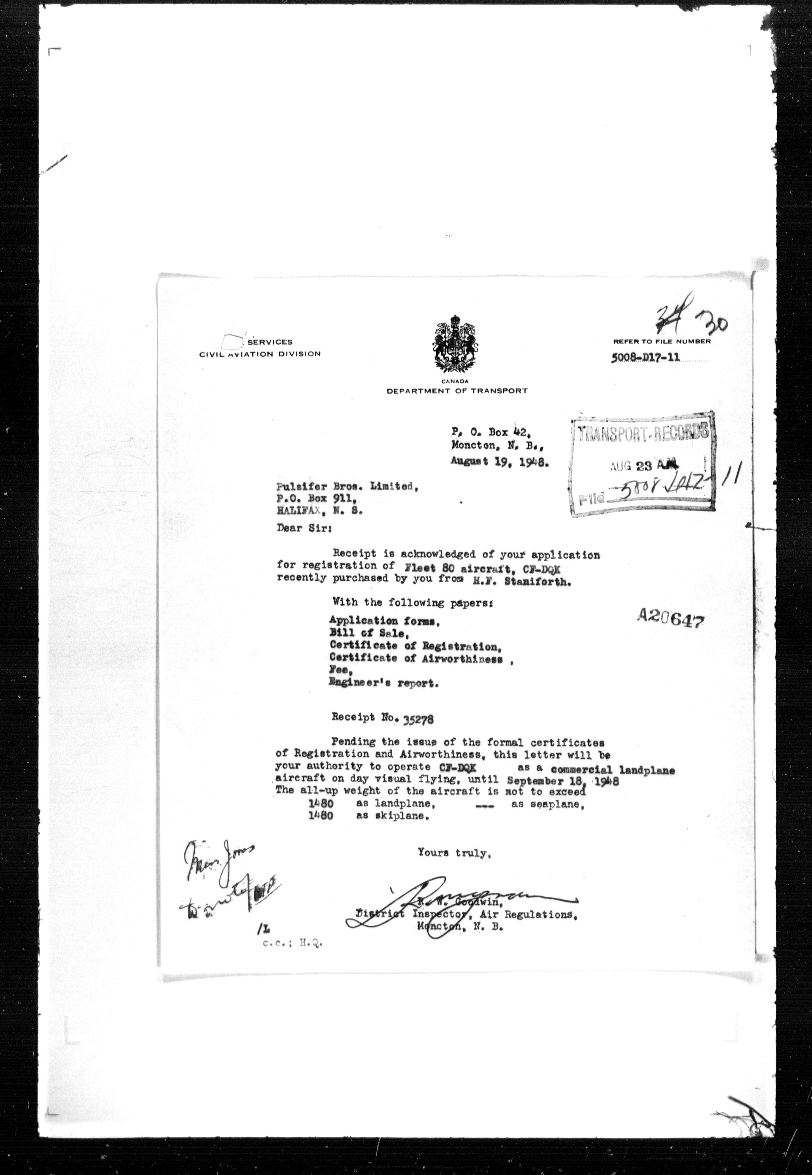 Department of Transport : Civil aircraft registration, inspection and operation files, block 5008, 1920-1986 - 7493