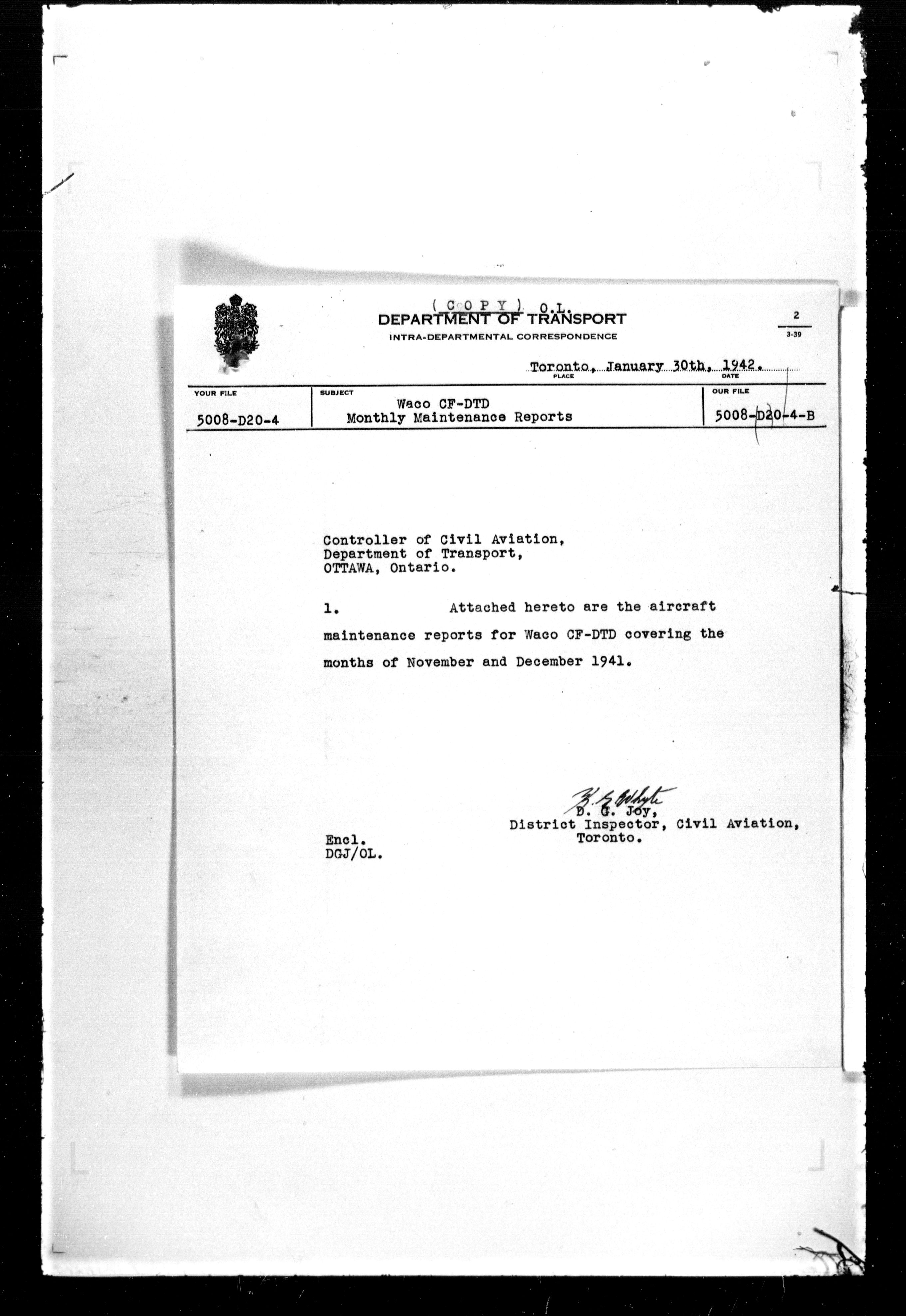 Department of Transport : Civil aircraft registration, inspection and operation files, block 5008, 1920-1986 - 7494