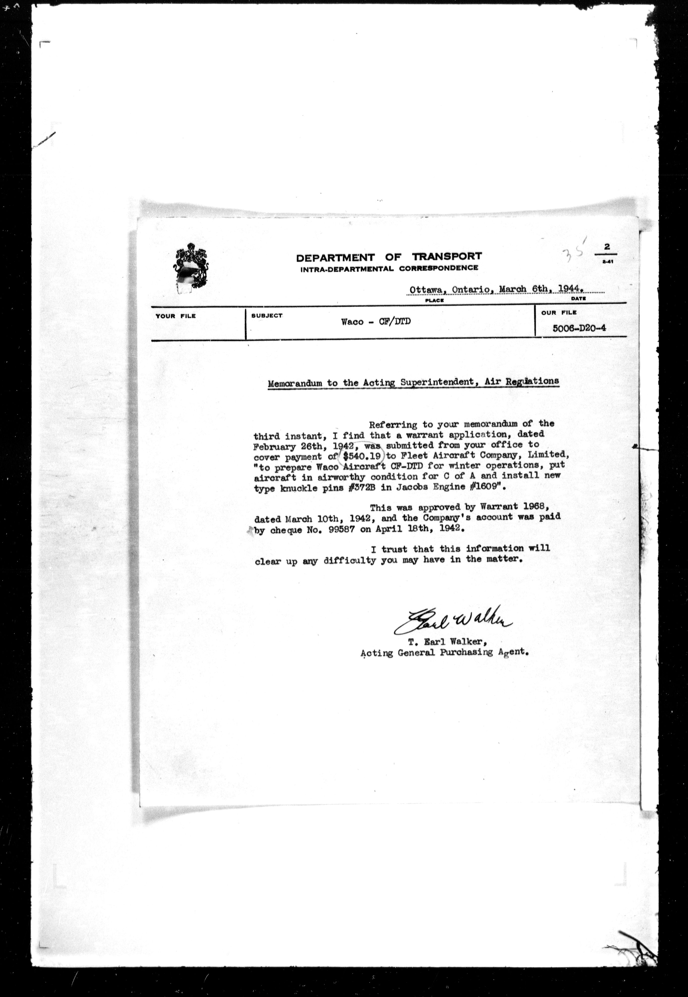 Department of Transport : Civil aircraft registration, inspection and operation files, block 5008, 1920-1986 - 7495