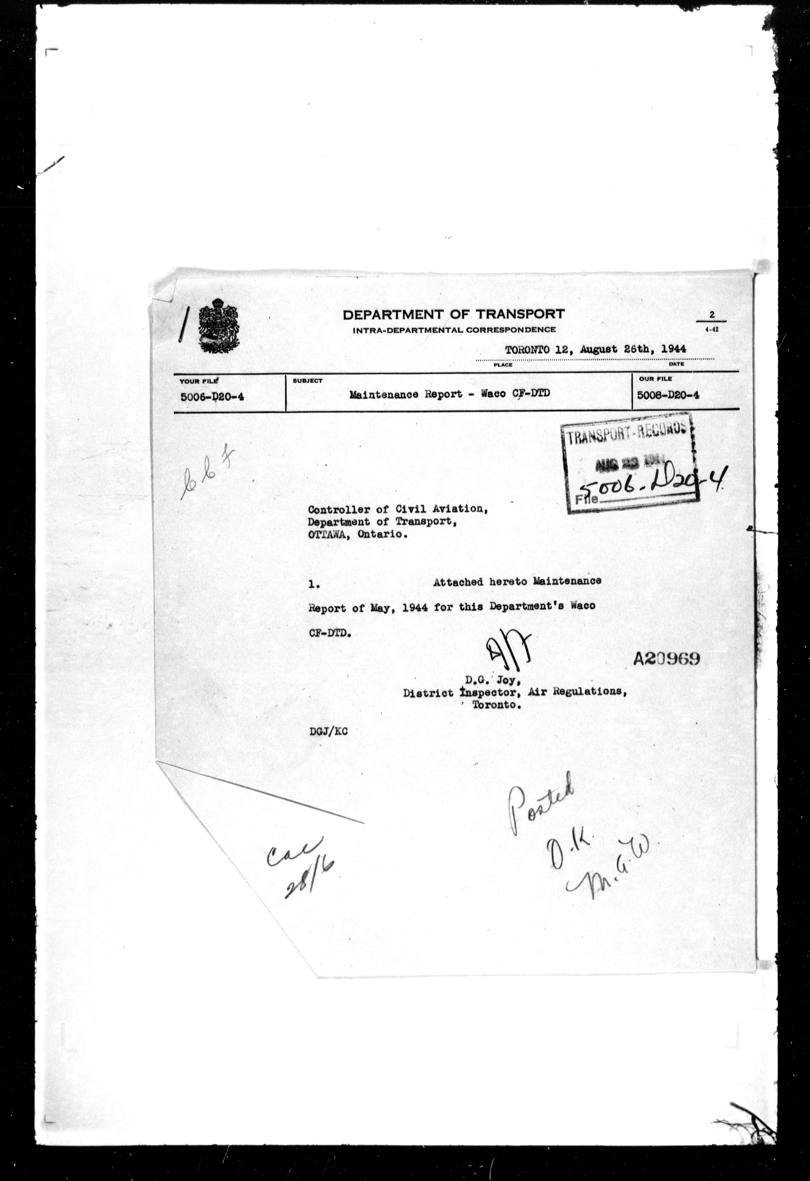 Department of Transport : Civil aircraft registration, inspection and operation files, block 5008, 1920-1986 - 7495