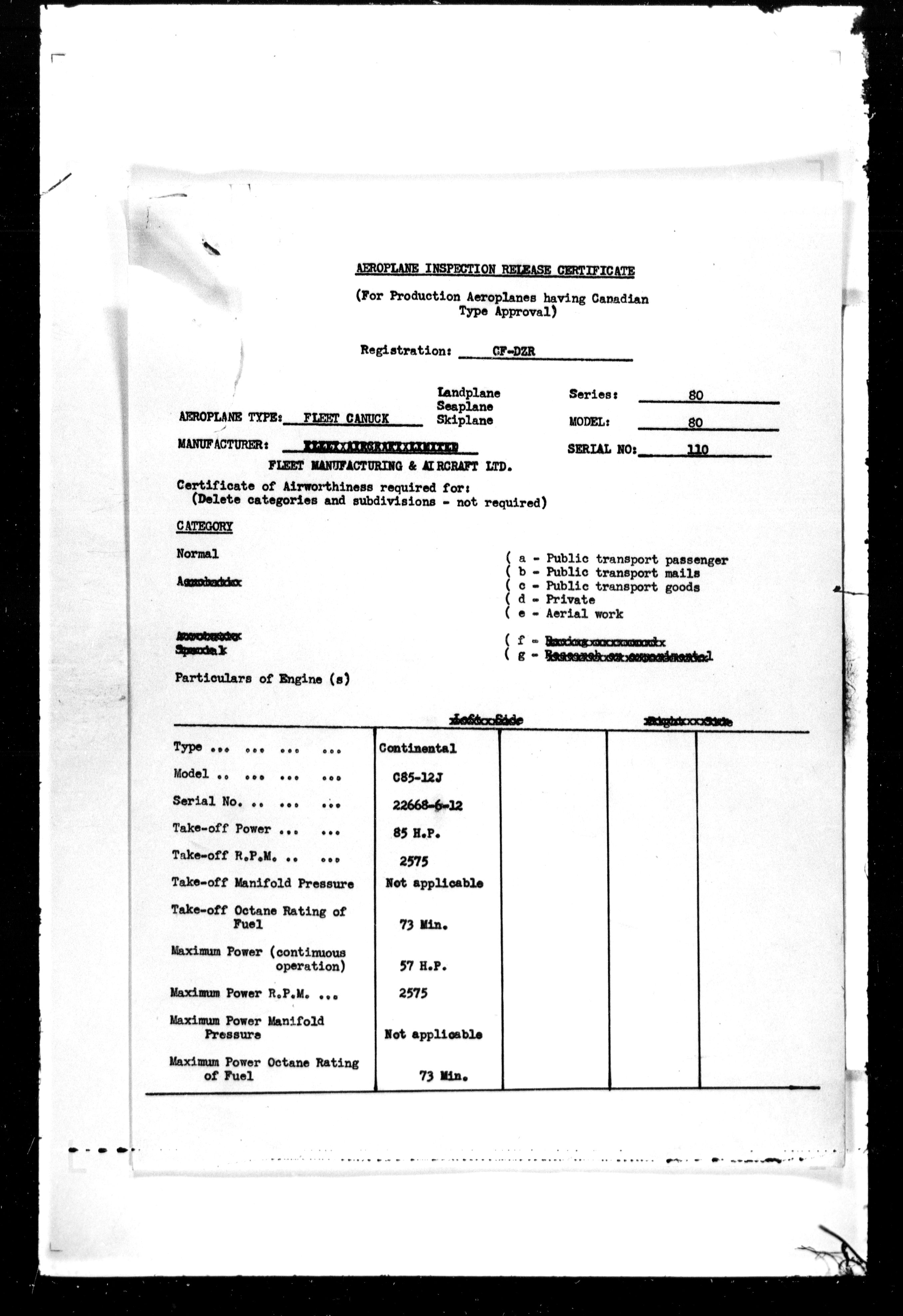Department of Transport : Civil aircraft registration, inspection and operation files, block 5008, 1920-1986 - 7496