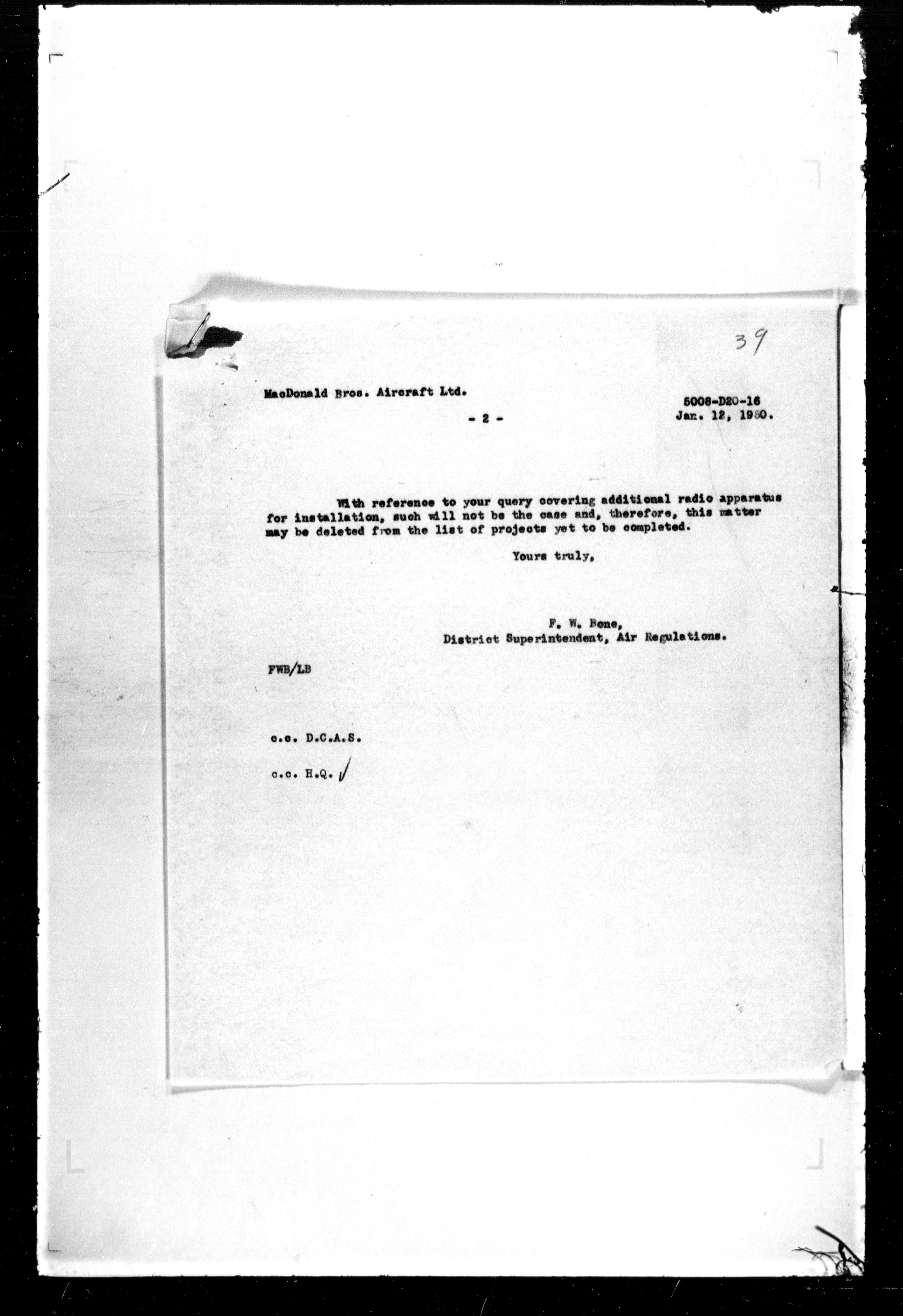 Department of Transport : Civil aircraft registration, inspection and operation files, block 5008, 1920-1986 - 7496