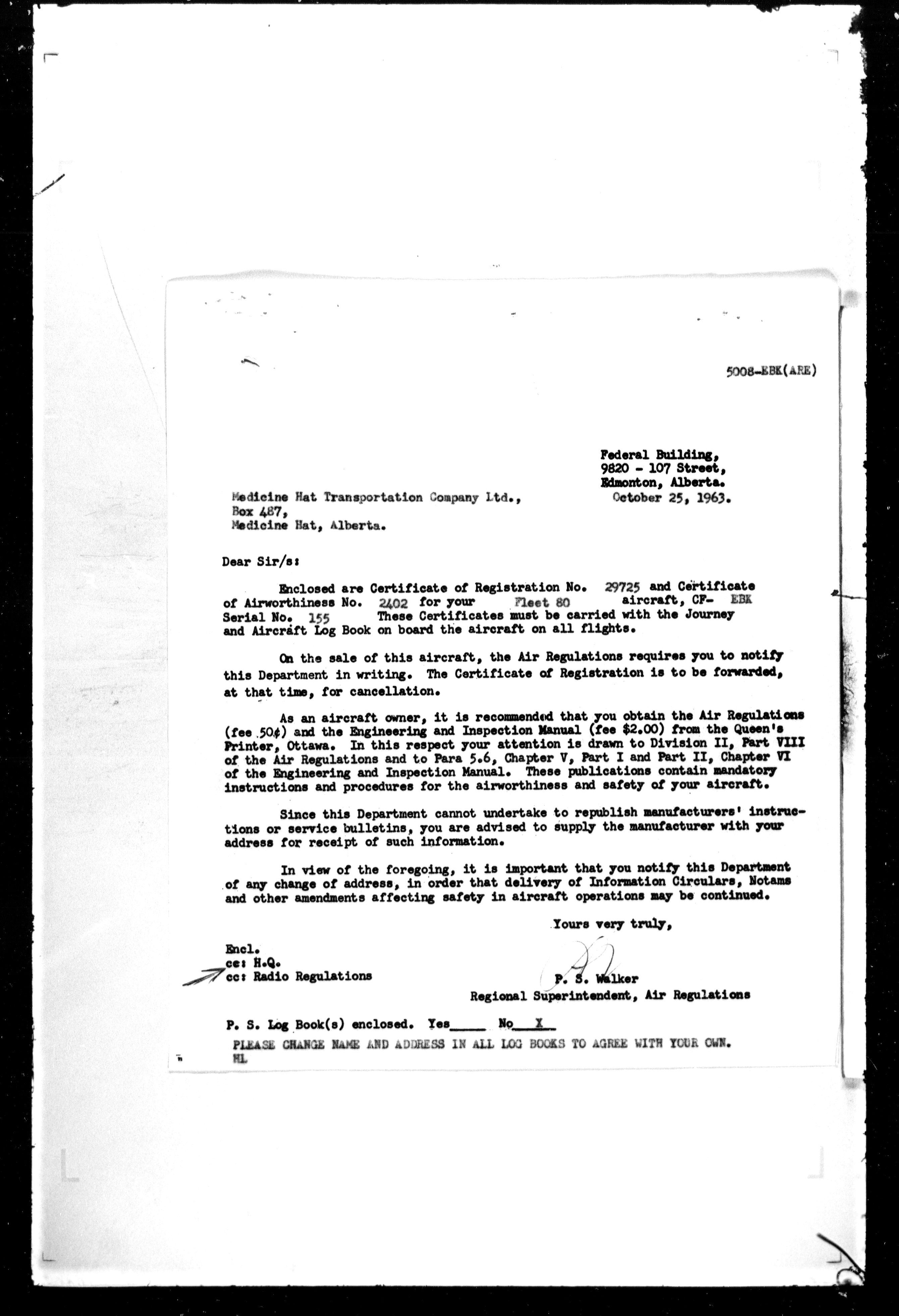 Department of Transport : Civil aircraft registration, inspection and operation files, 1920-1986 : T-7497