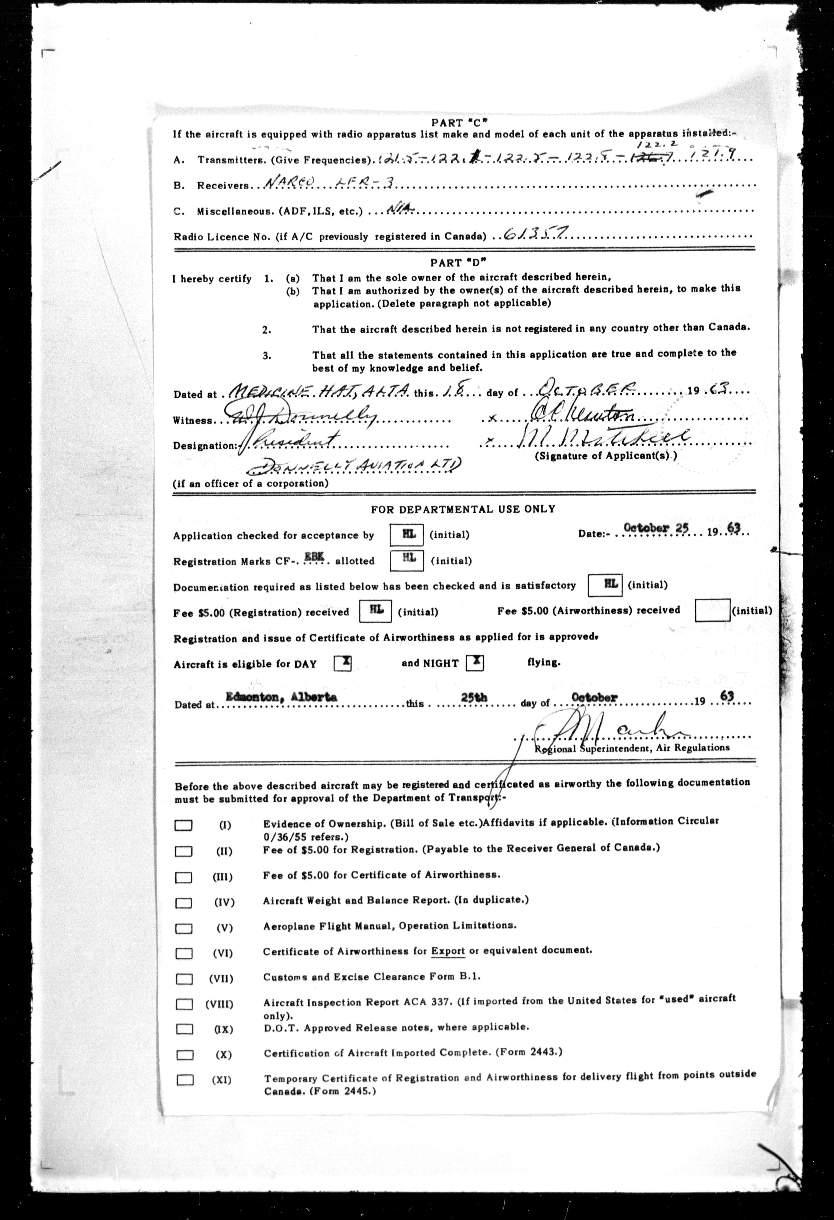 Department of Transport : Civil aircraft registration, inspection and operation files, 1920-1986 : T-7497