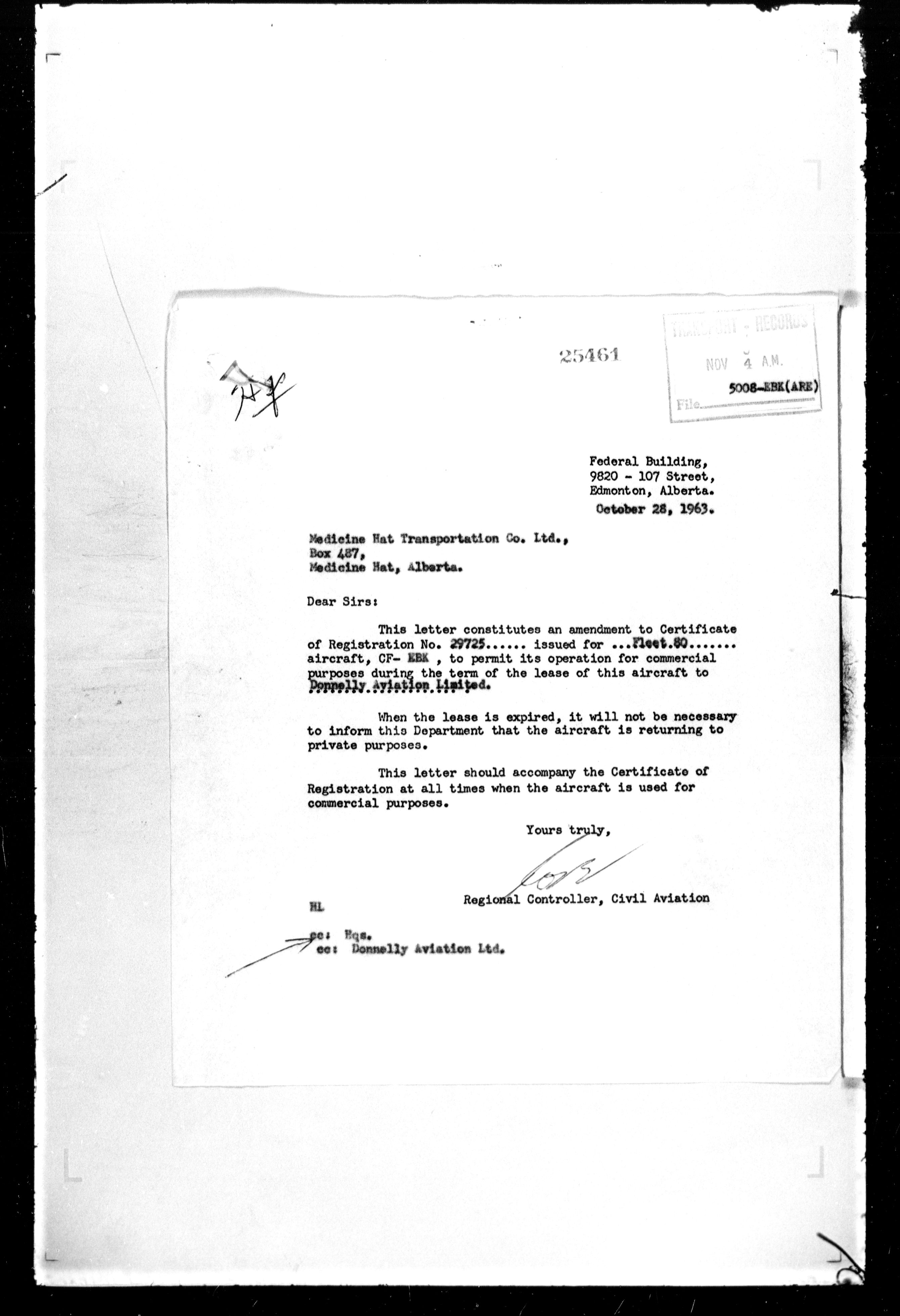 Department of Transport : Civil aircraft registration, inspection and operation files, 1920-1986 : T-7497