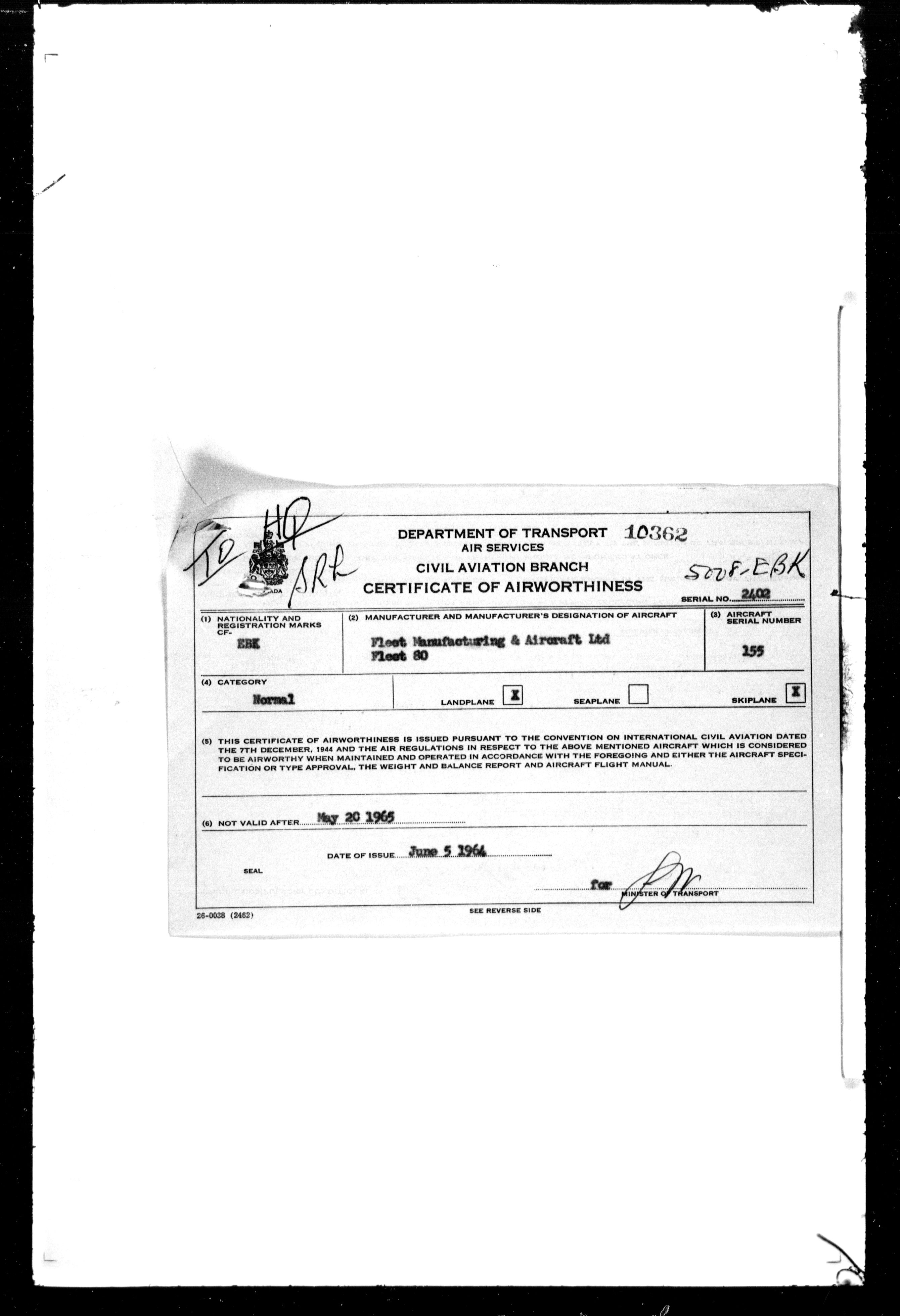 Department of Transport : Civil aircraft registration, inspection and operation files, block 5008, 1920-1986 - 7497