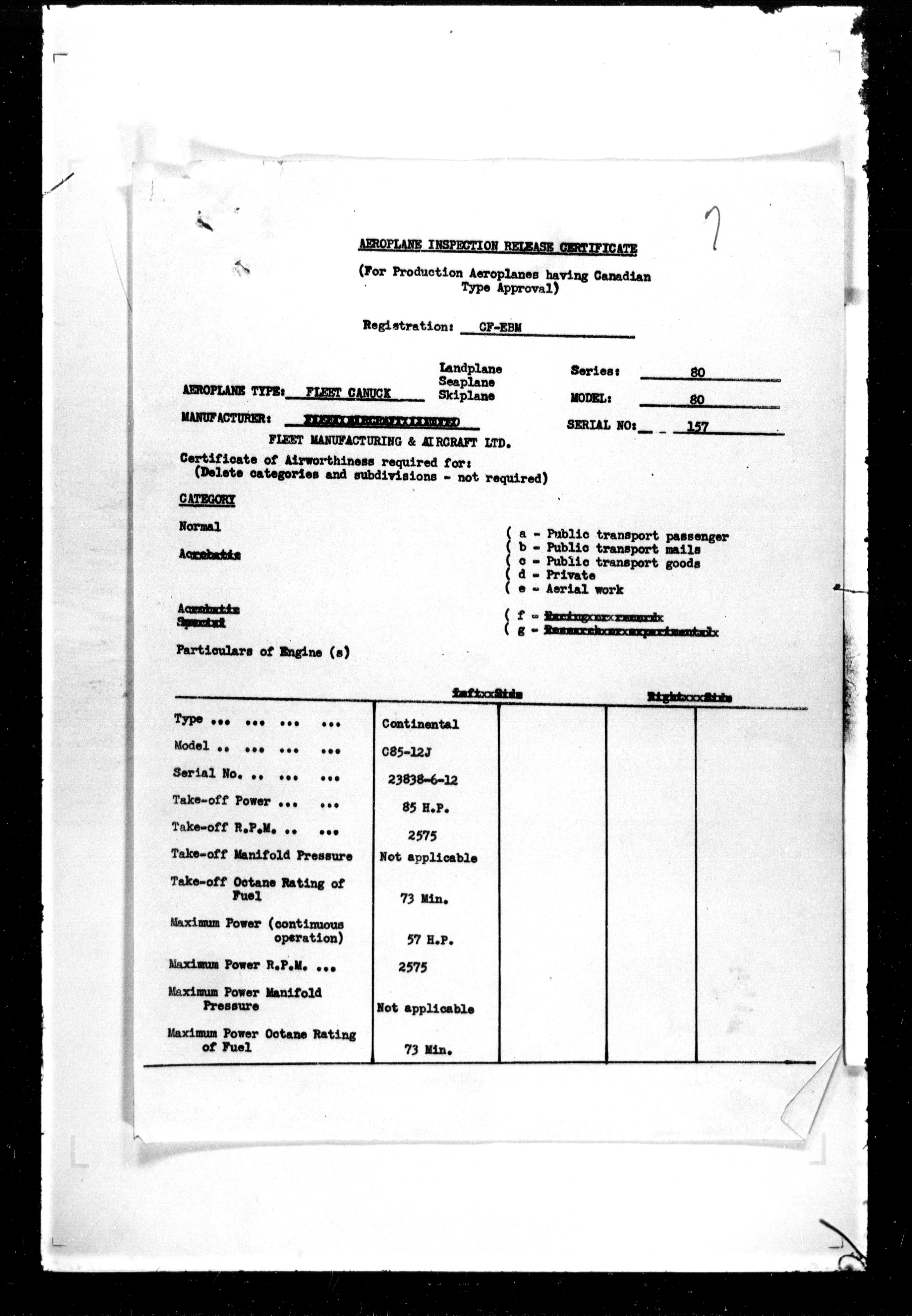 Department of Transport : Civil aircraft registration, inspection and operation files, block 5008, 1920-1986 - 7498