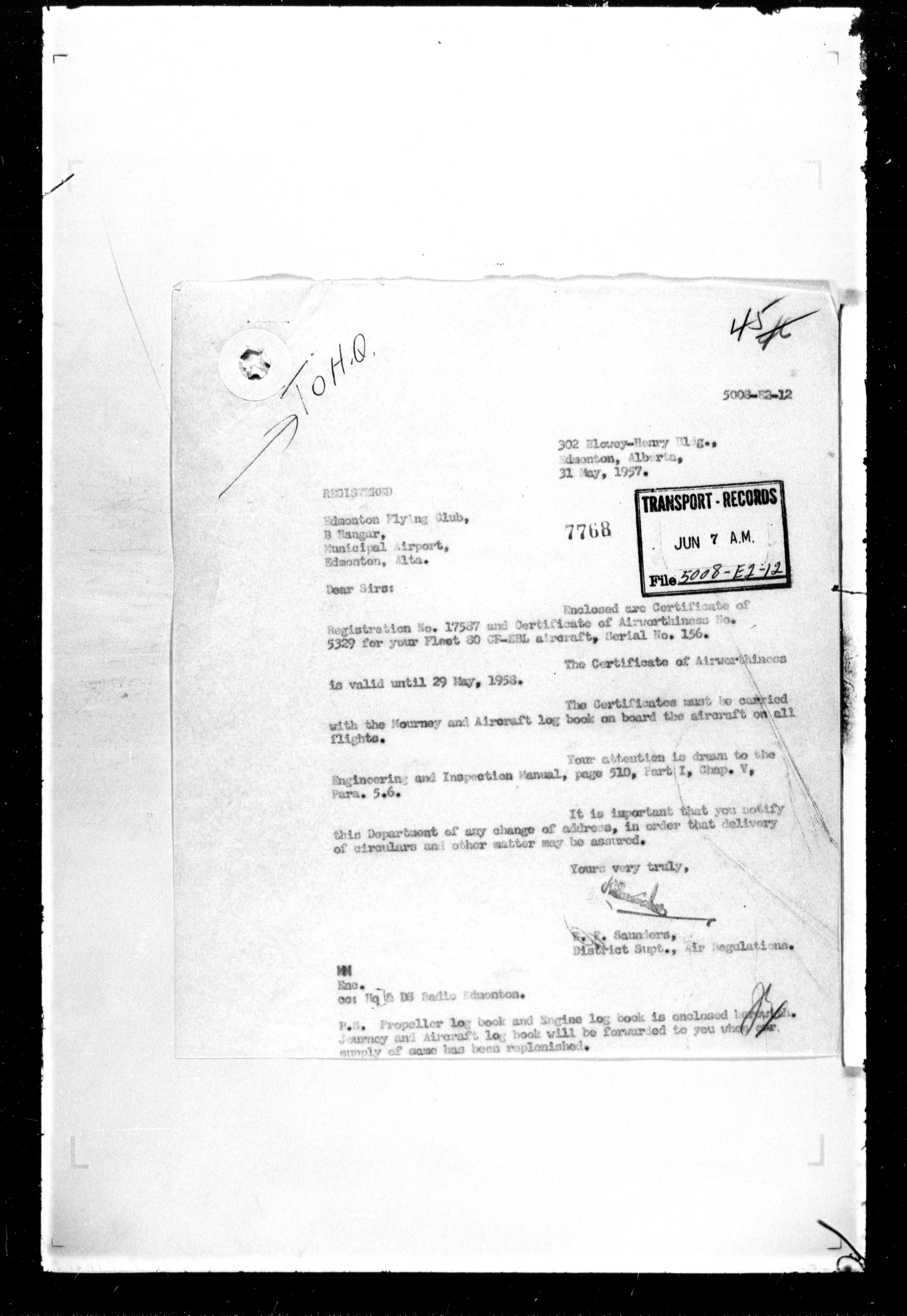 Department of Transport : Civil aircraft registration, inspection and operation files, block 5008, 1920-1986 - 7498