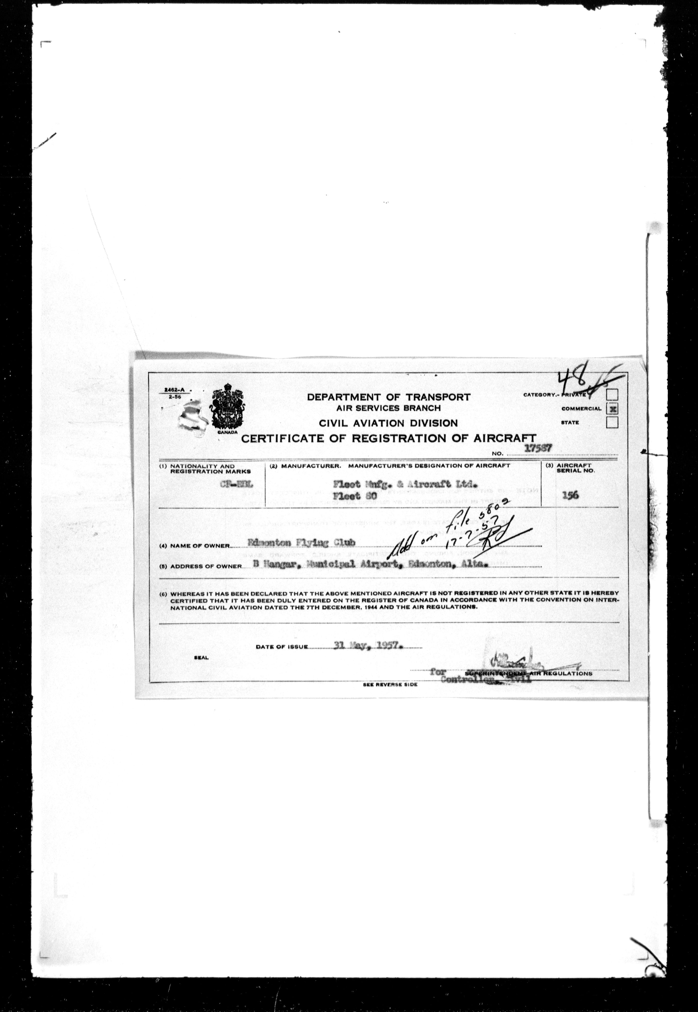 Department of Transport : Civil aircraft registration, inspection and operation files, block 5008, 1920-1986 - 7498