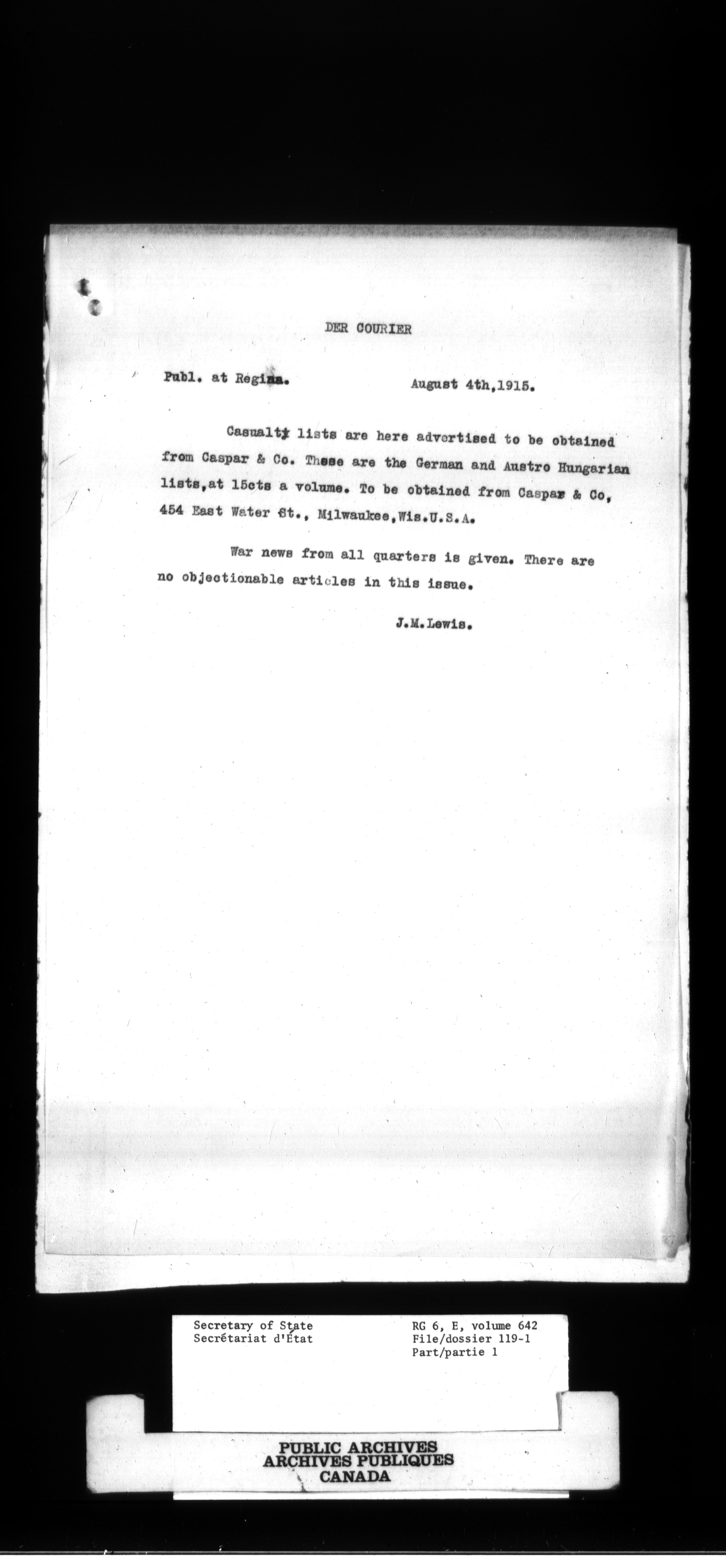 RG6 Secretary of State - Chief Press Censors - 750