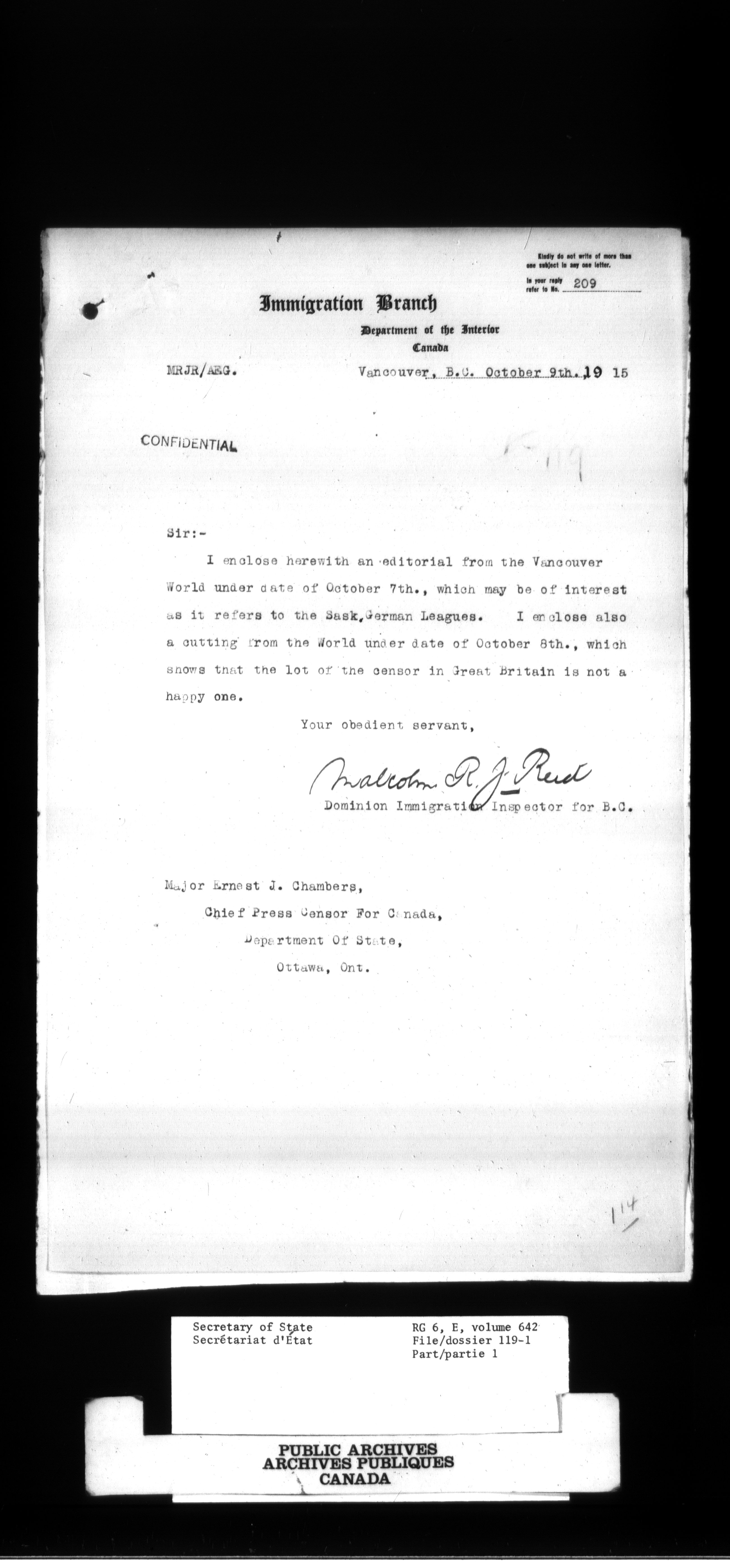 RG6 Secretary of State - Chief Press Censors - 750