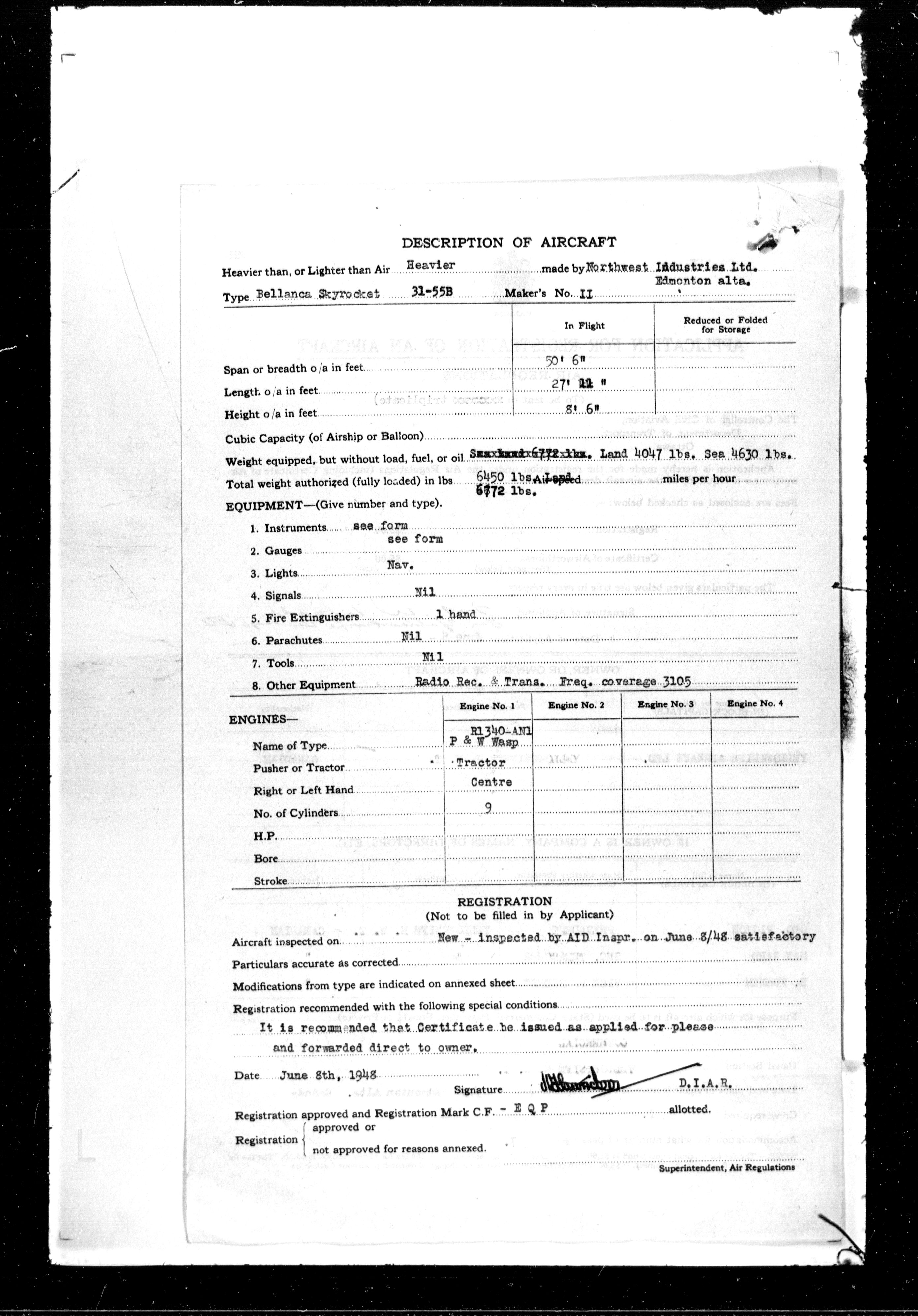 Department of Transport : Civil aircraft registration, inspection and operation files, block 5008, 1920-1986 - 7500