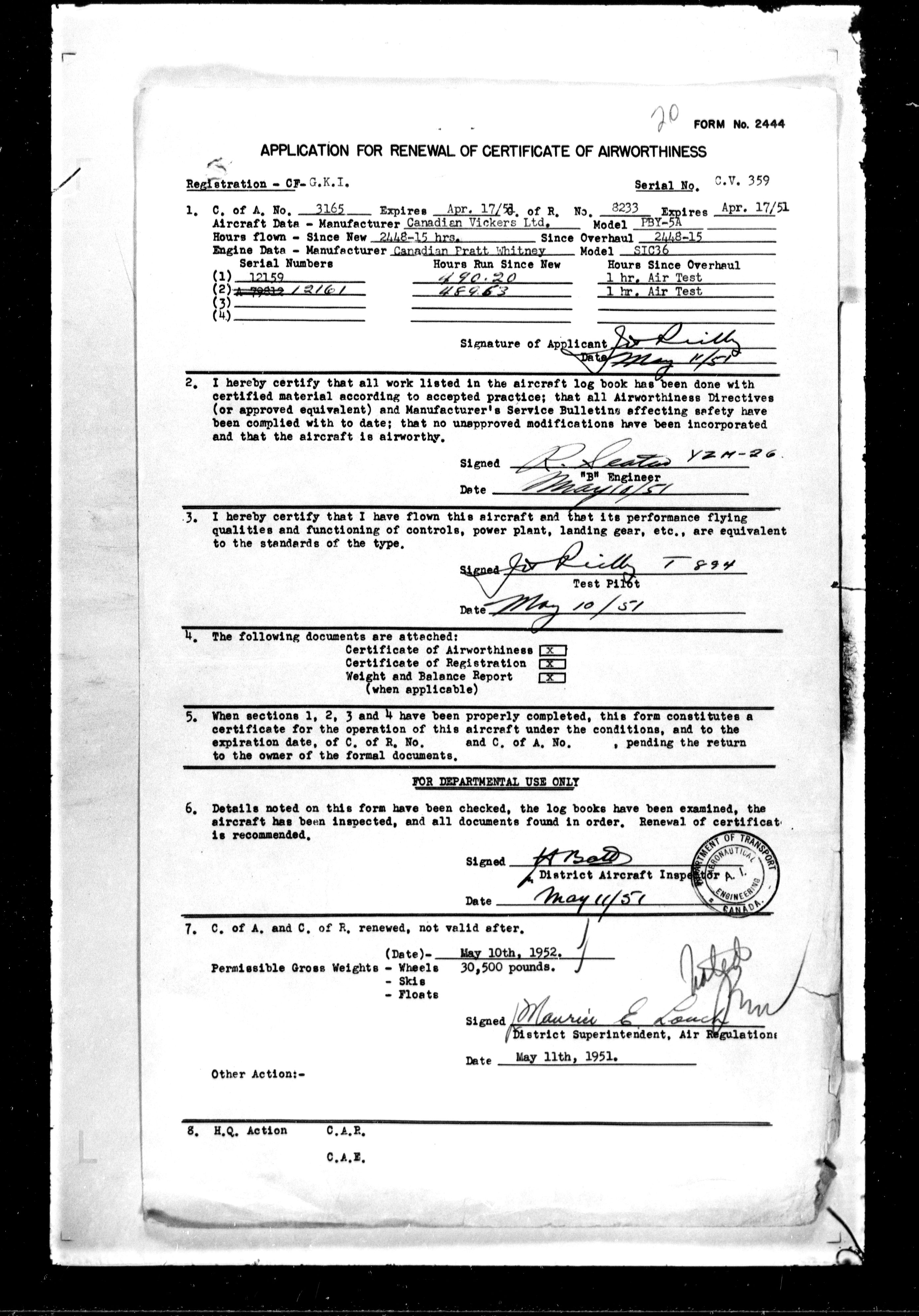 Department of Transport : Civil aircraft registration, inspection and operation files, block 5008, 1920-1986 - 7502