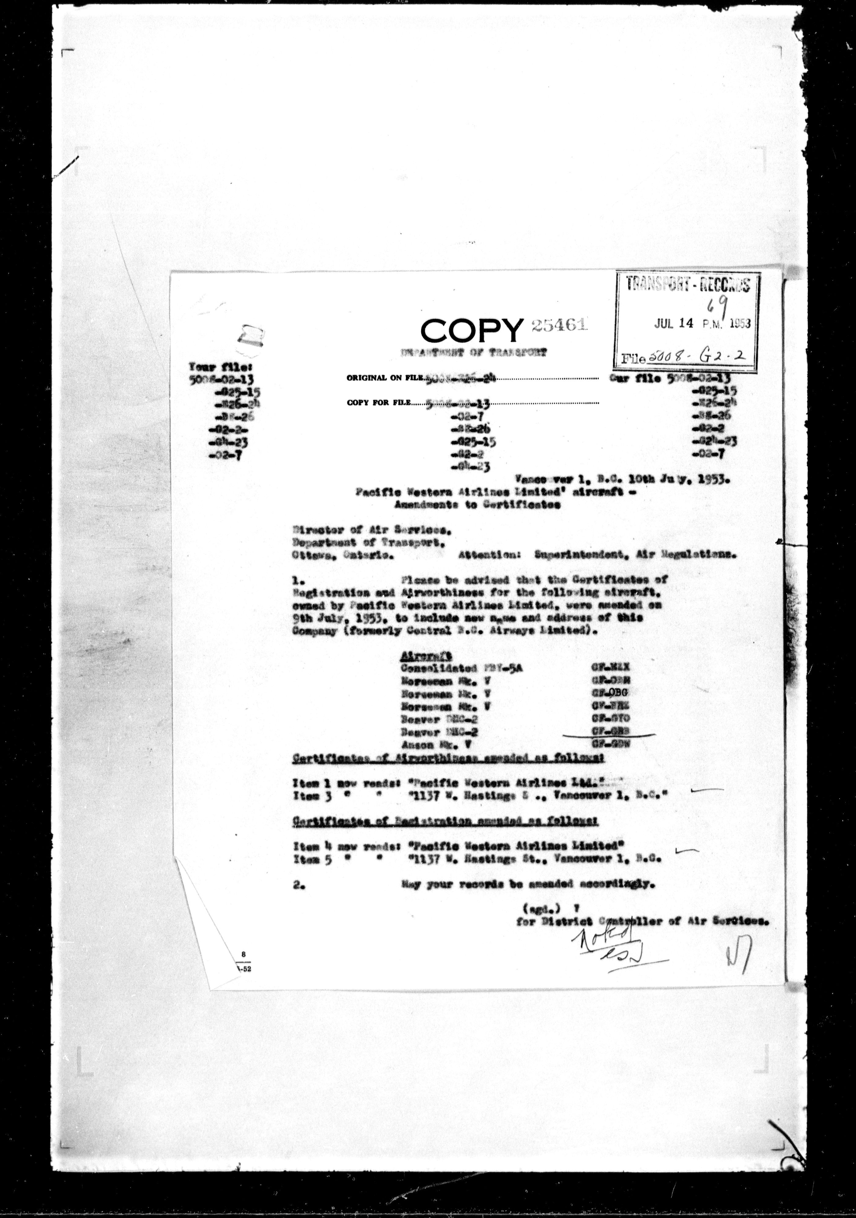 Department of Transport : Civil aircraft registration, inspection and operation files, block 5008, 1920-1986 - 7502
