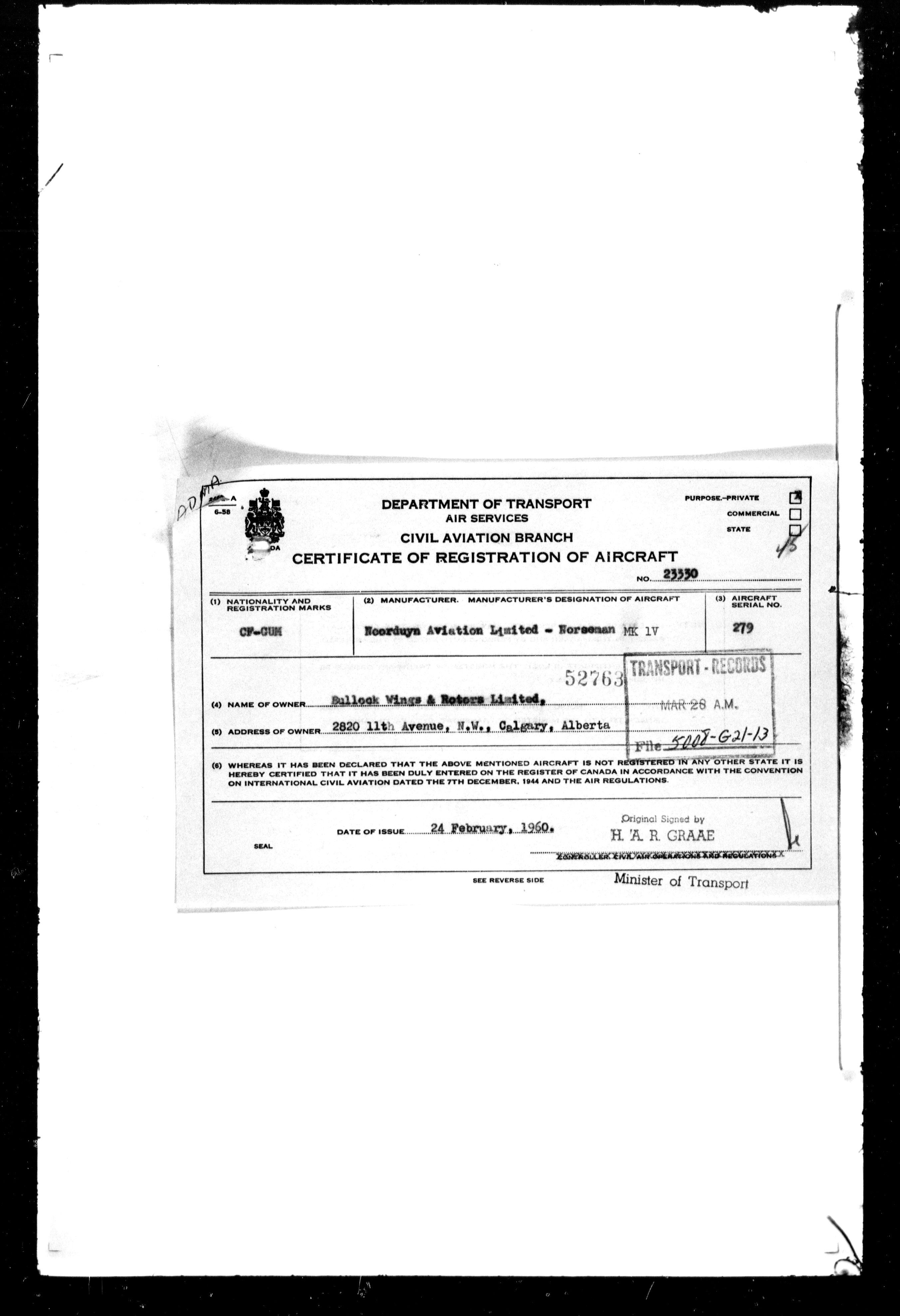 Department of Transport : Civil aircraft registration, inspection and operation files, block 5008, 1920-1986 - 7503