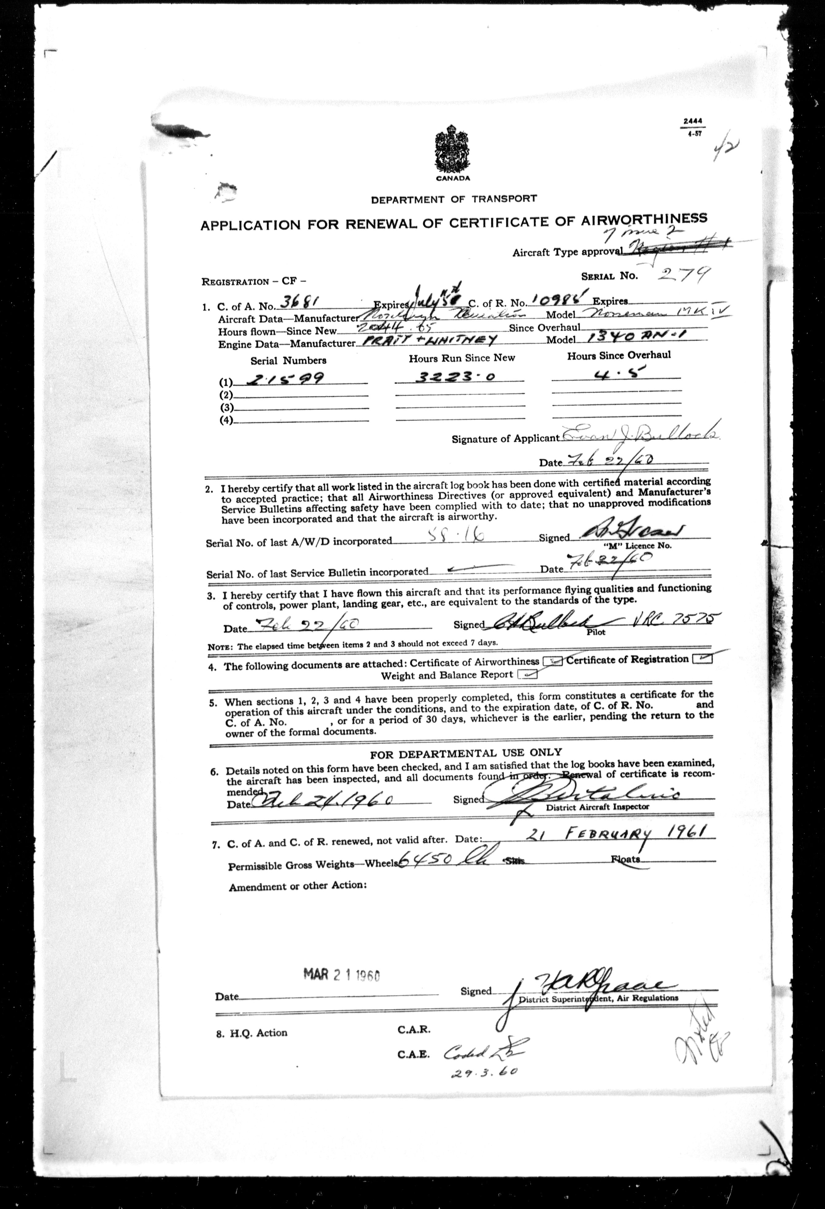 Department of Transport : Civil aircraft registration, inspection and operation files, block 5008, 1920-1986 - 7503