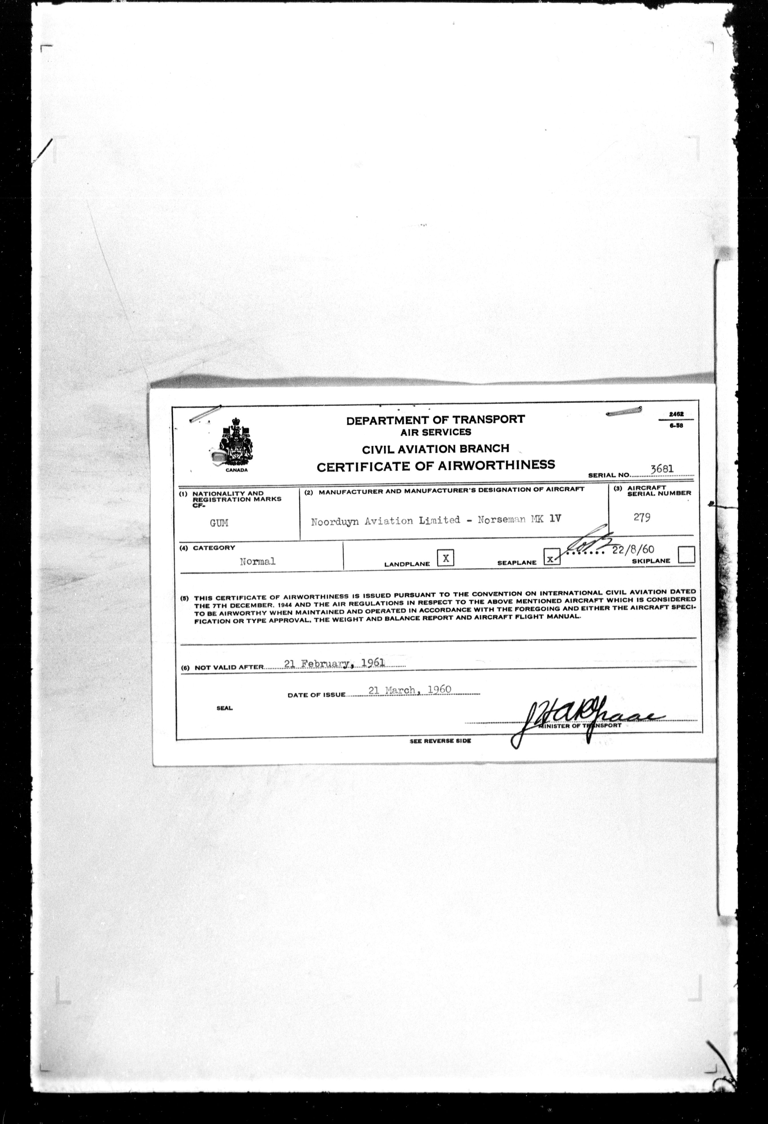 Department of Transport : Civil aircraft registration, inspection and operation files, block 5008, 1920-1986 - 7503