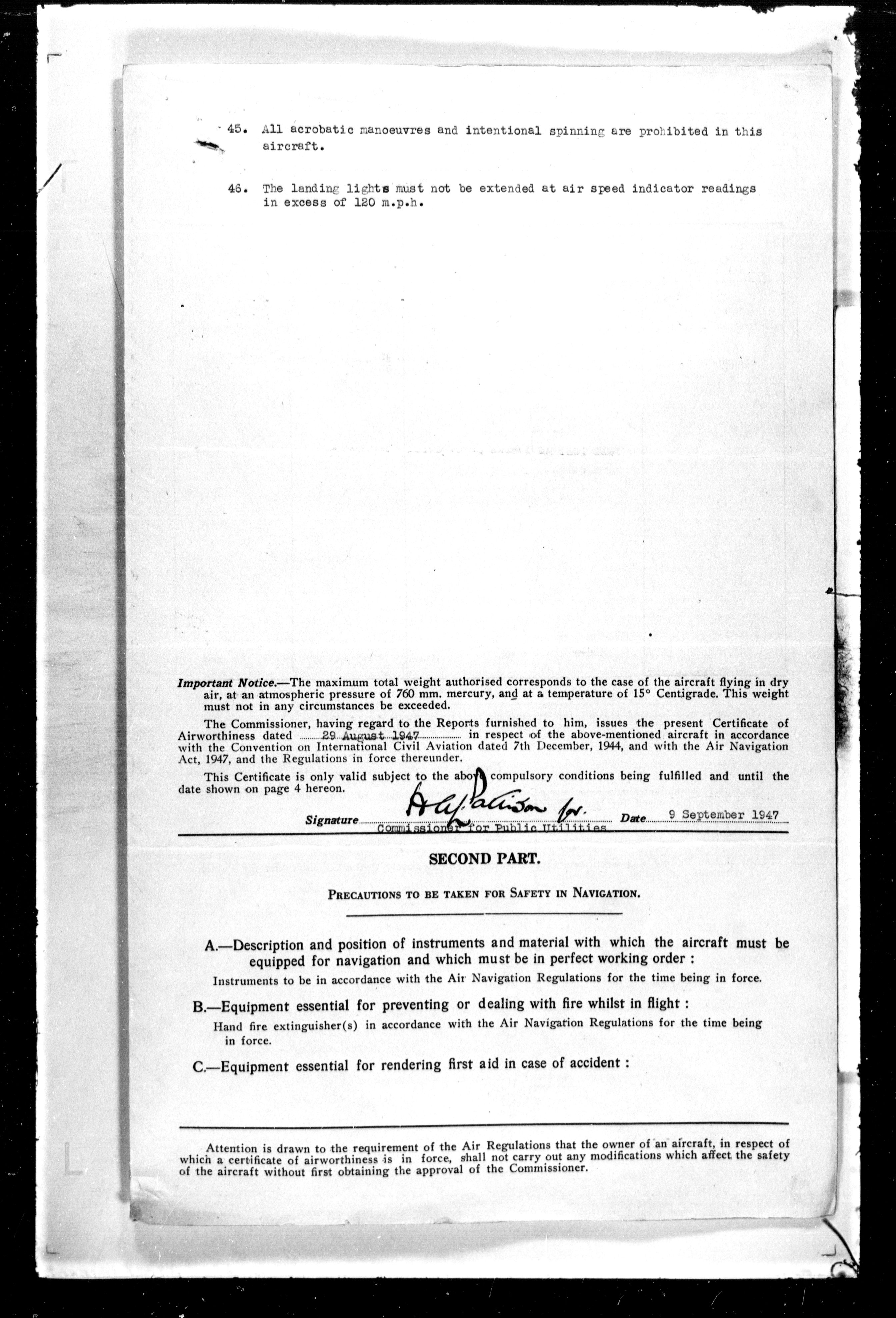 Department of Transport : Civil aircraft registration, inspection and operation files, block 5008, 1920-1986 - 7503