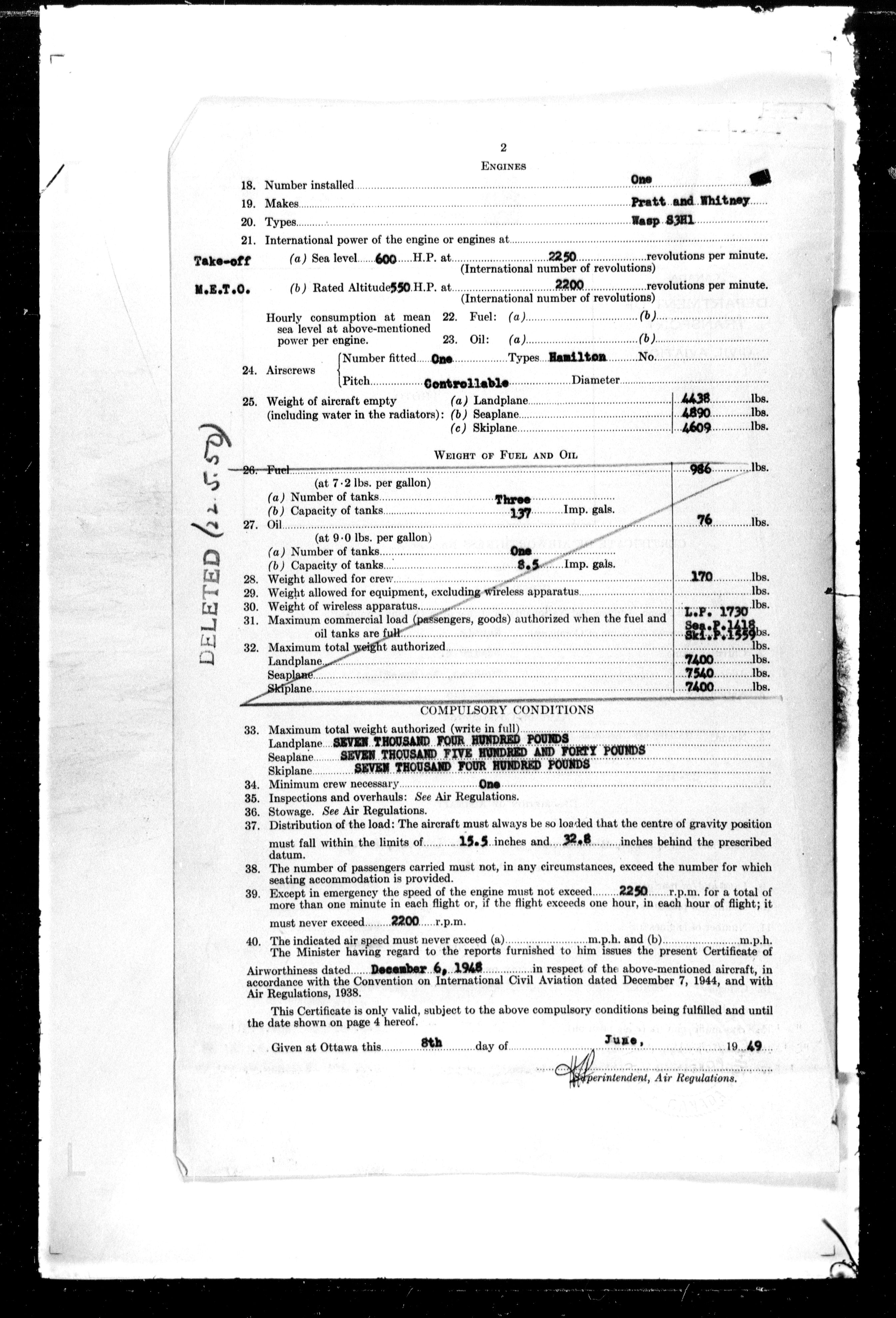 Department of Transport : Civil aircraft registration, inspection and operation files, block 5008, 1920-1986 - 7503