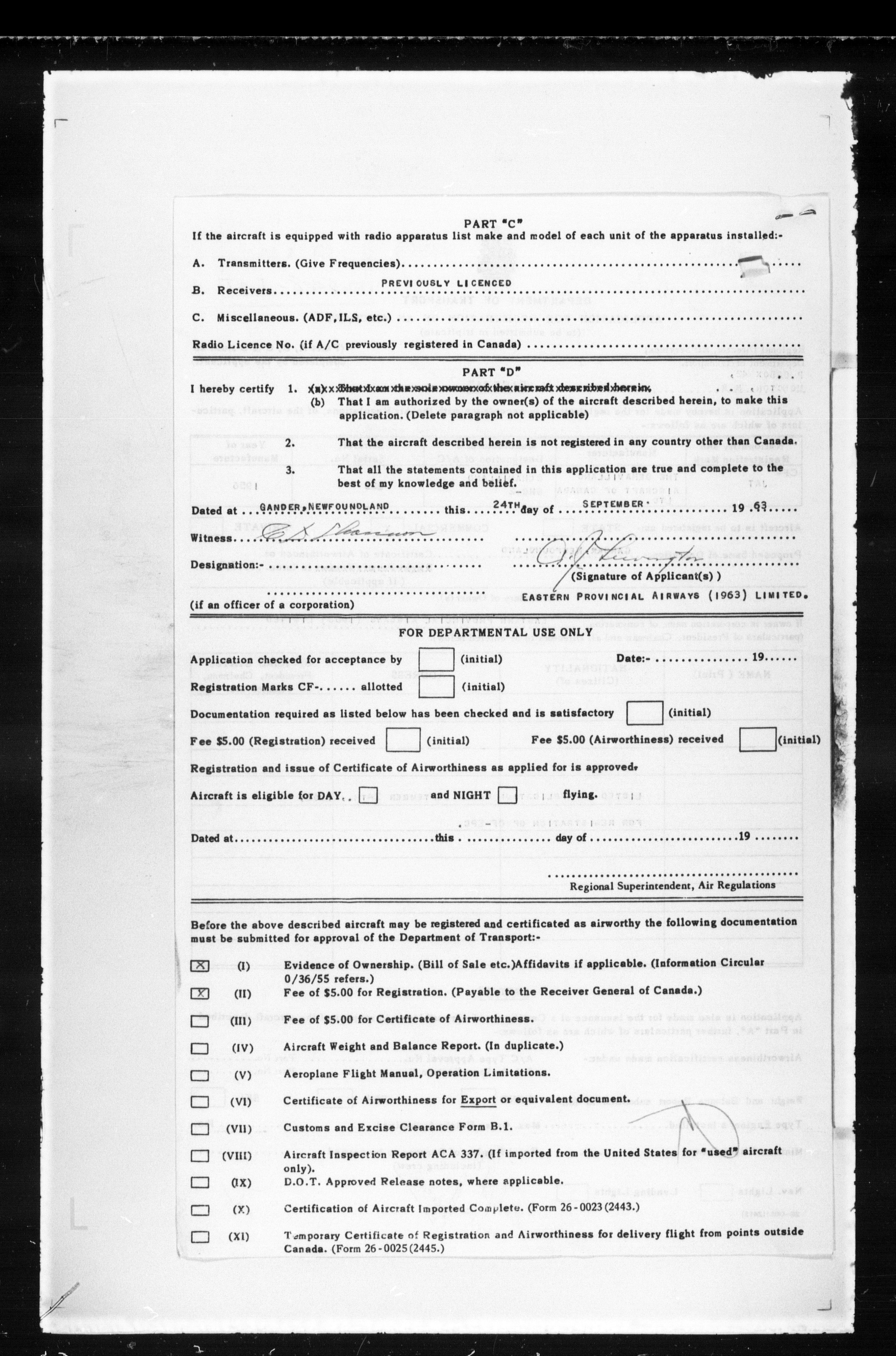 Department of Transport : Civil aircraft registration, inspection and operation files, 1920-1986 : T-7505