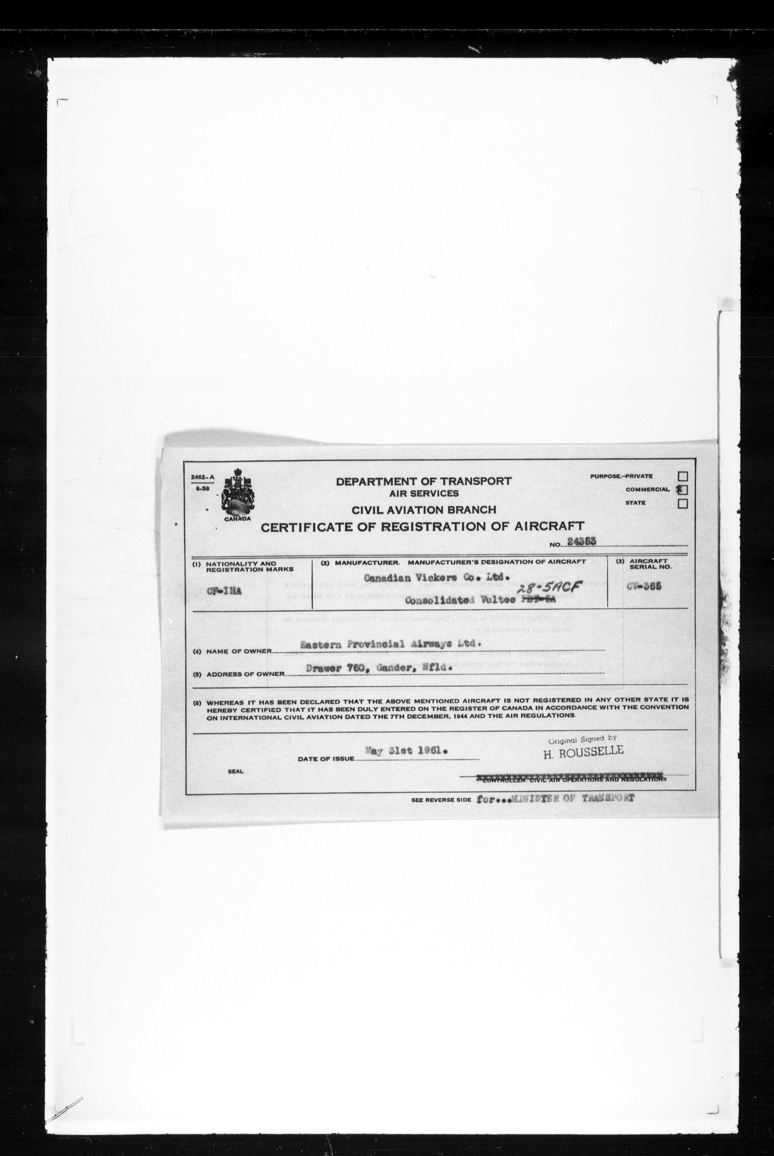 Department of Transport : Civil aircraft registration, inspection and operation files, 1920-1986 : T-7505