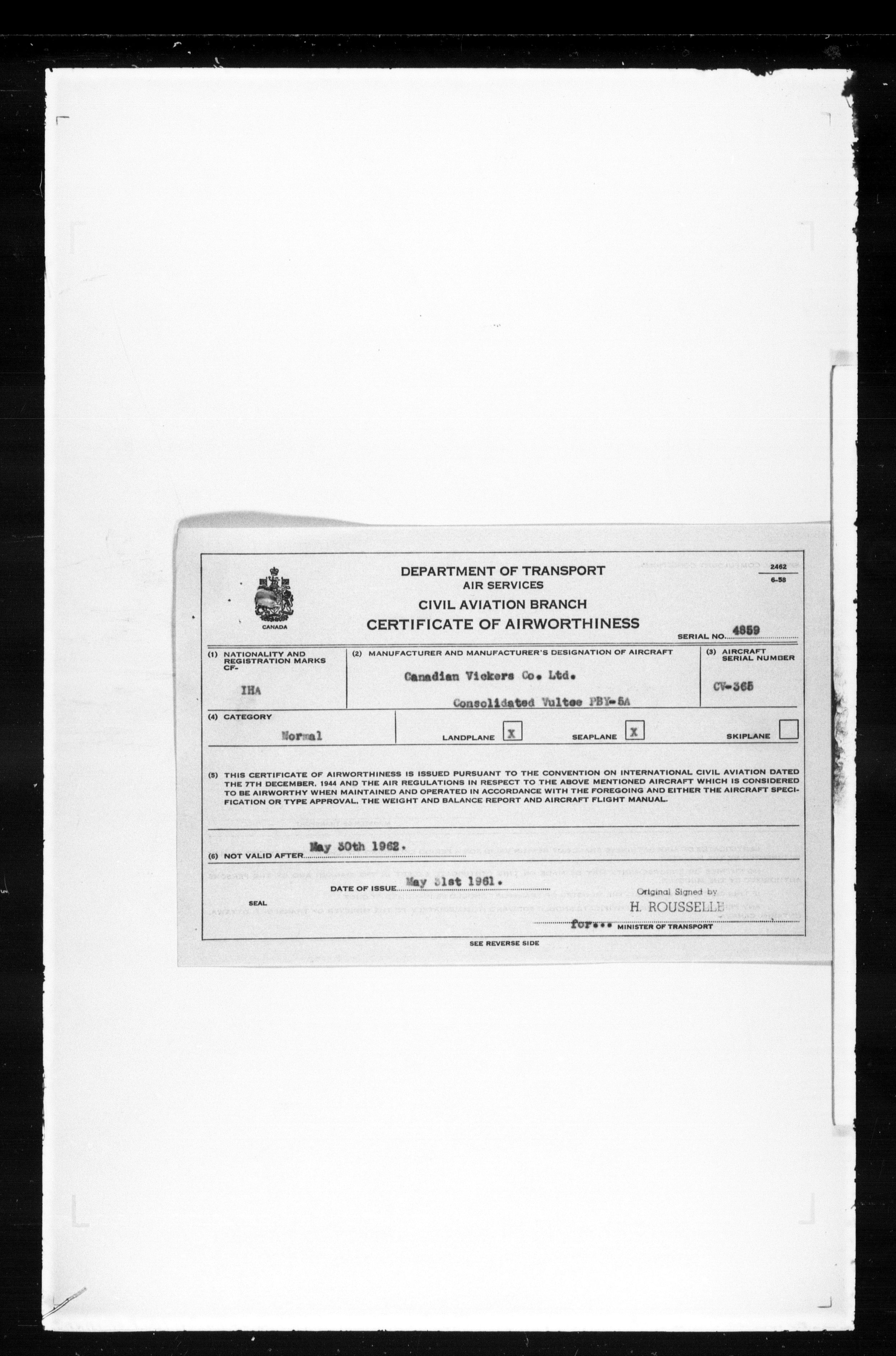 Department of Transport : Civil aircraft registration, inspection and operation files, 1920-1986 : T-7505