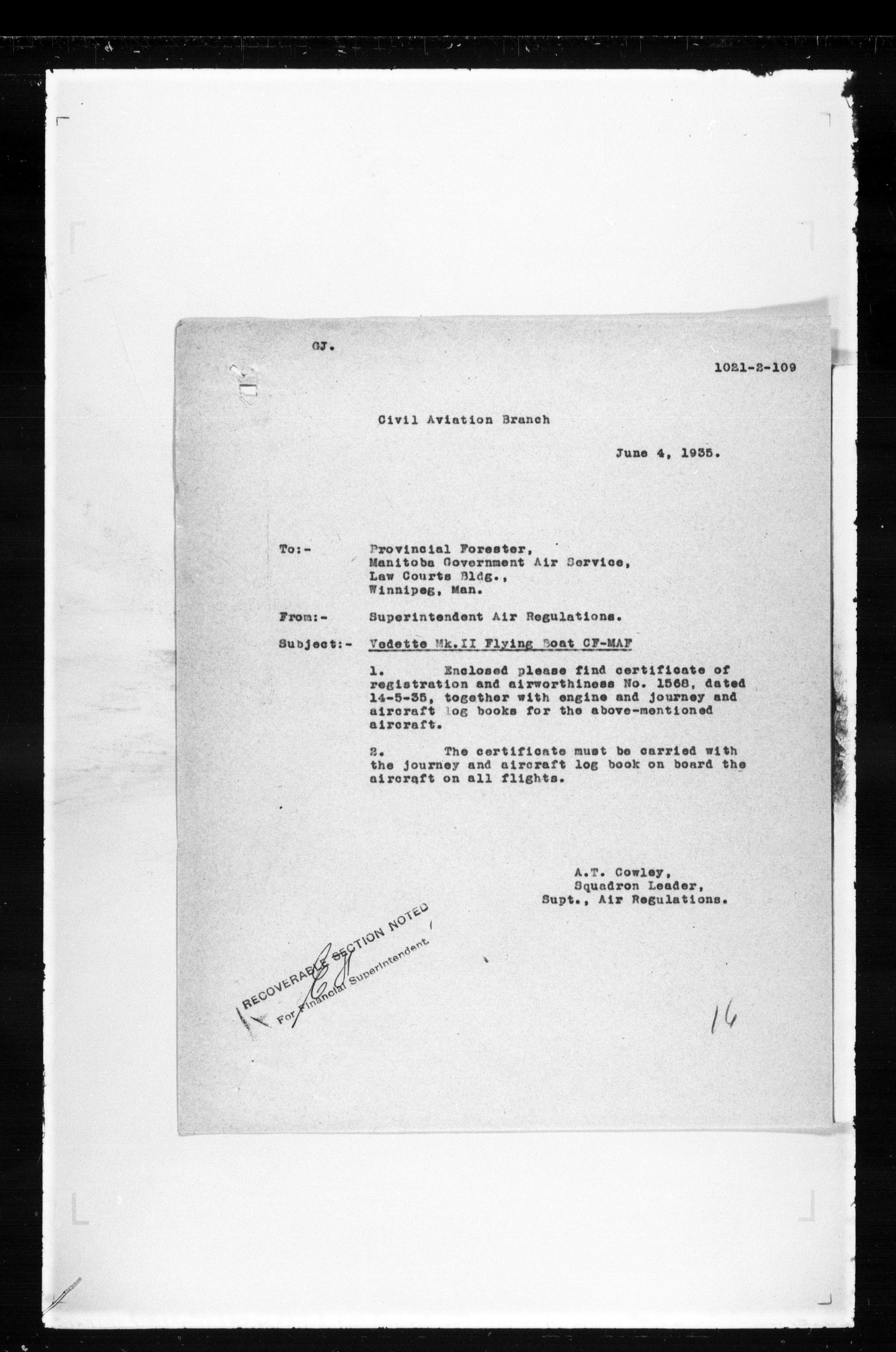 Department of Transport : Civil aircraft registration, inspection and operation files, block 5008, 1920-1986 - 7506