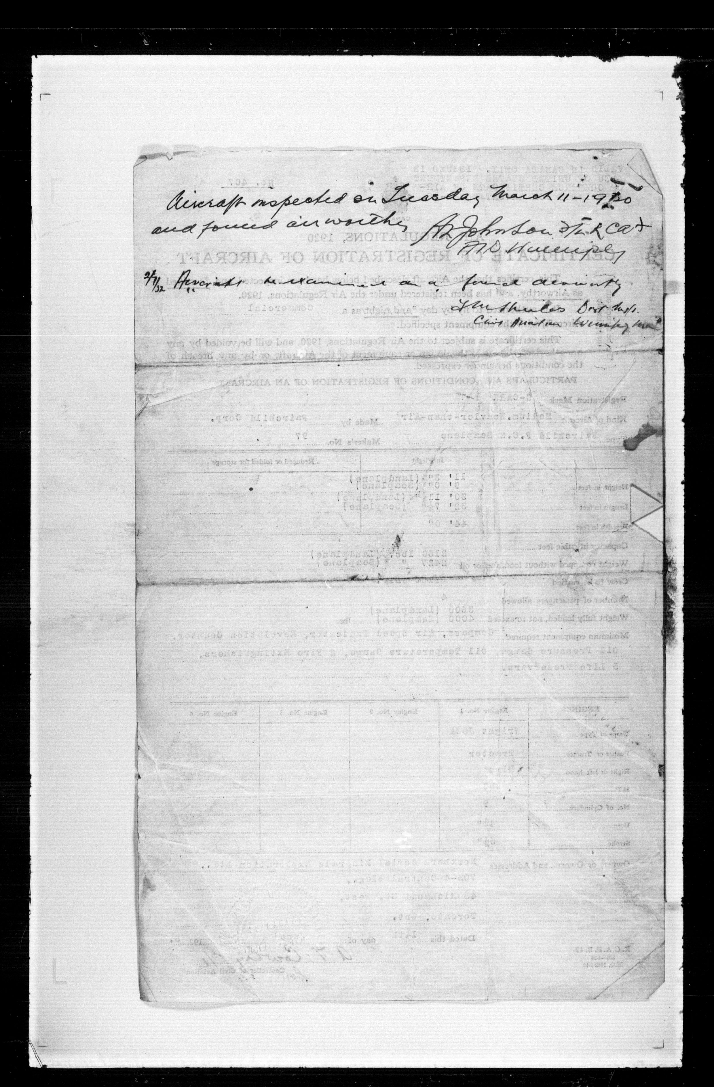Department of Transport : Civil aircraft registration, inspection and operation files, 1920-1986 : T-7507