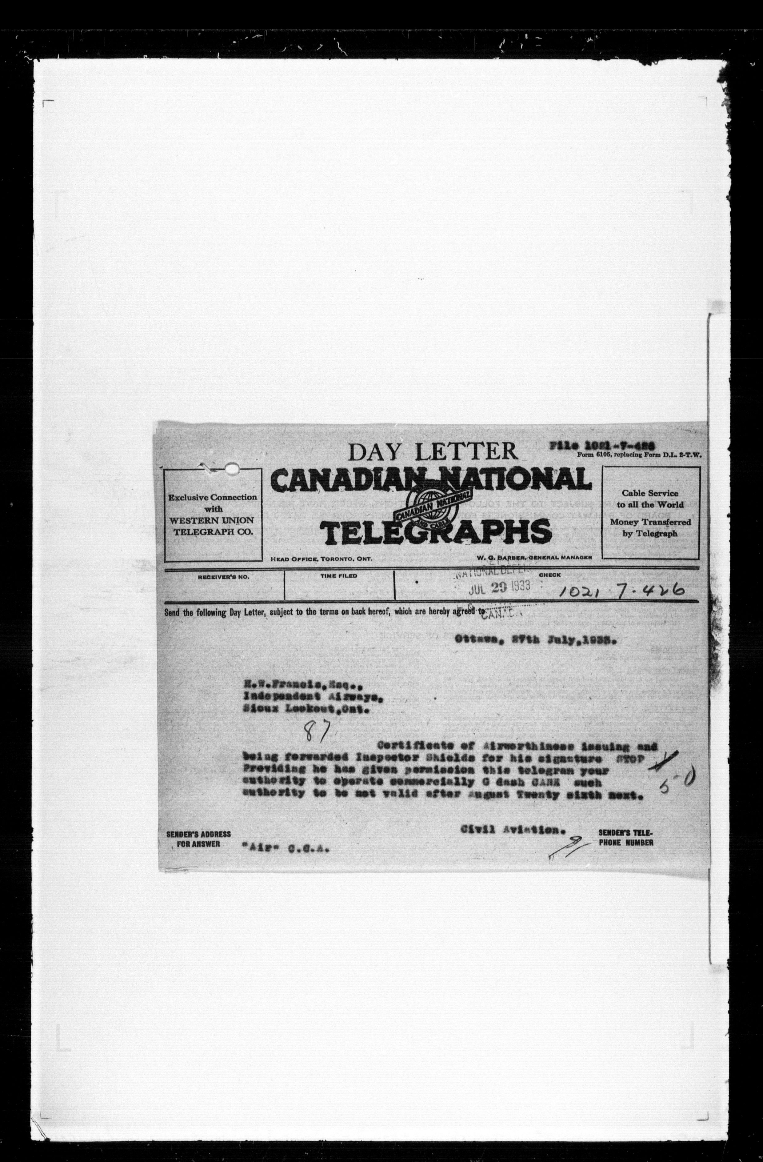 Department of Transport : Civil aircraft registration, inspection and operation files, 1920-1986 : T-7507