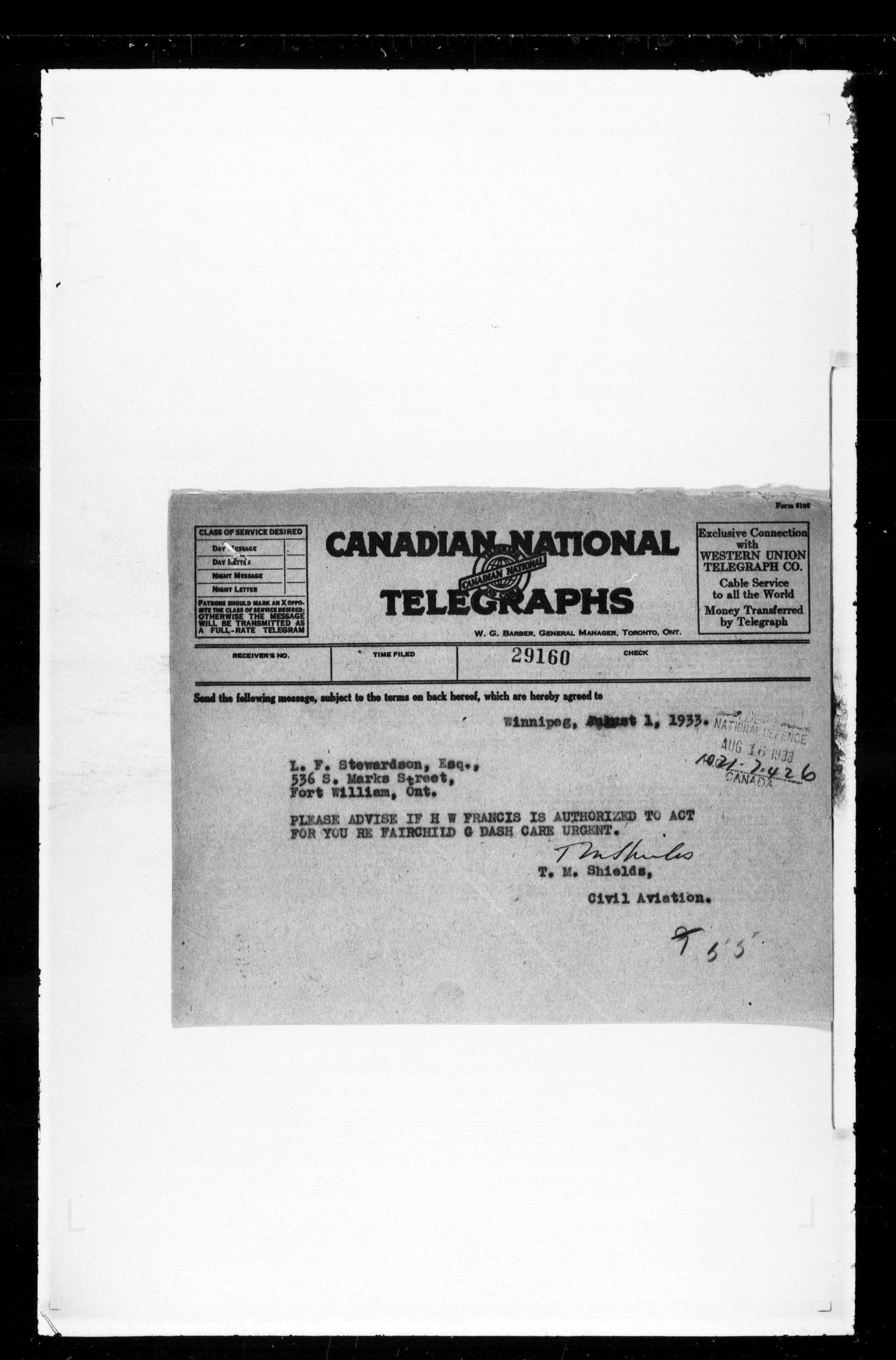 Department of Transport : Civil aircraft registration, inspection and operation files, 1920-1986 : T-7507