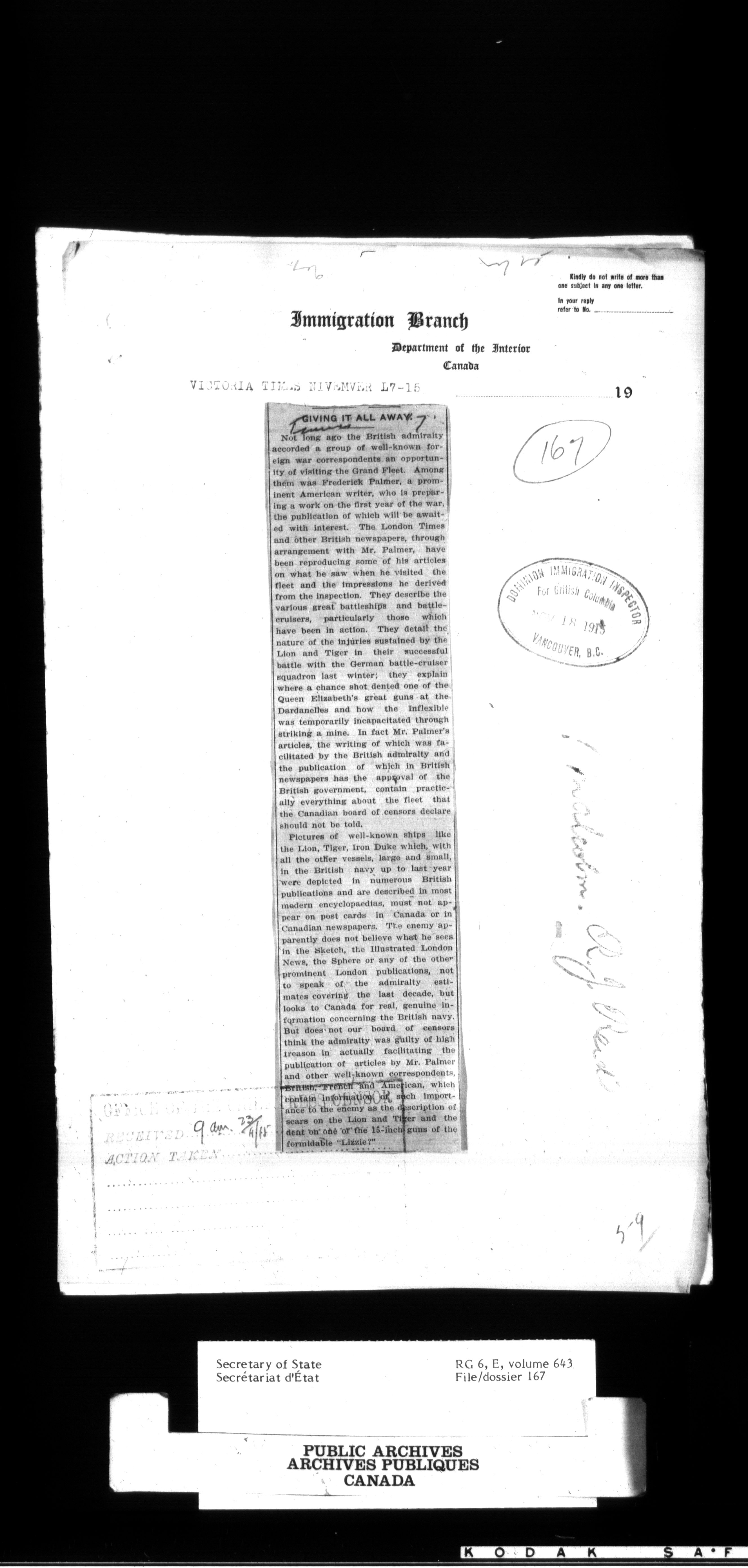 RG6 Secretary of State - Chief Press Censors - 751