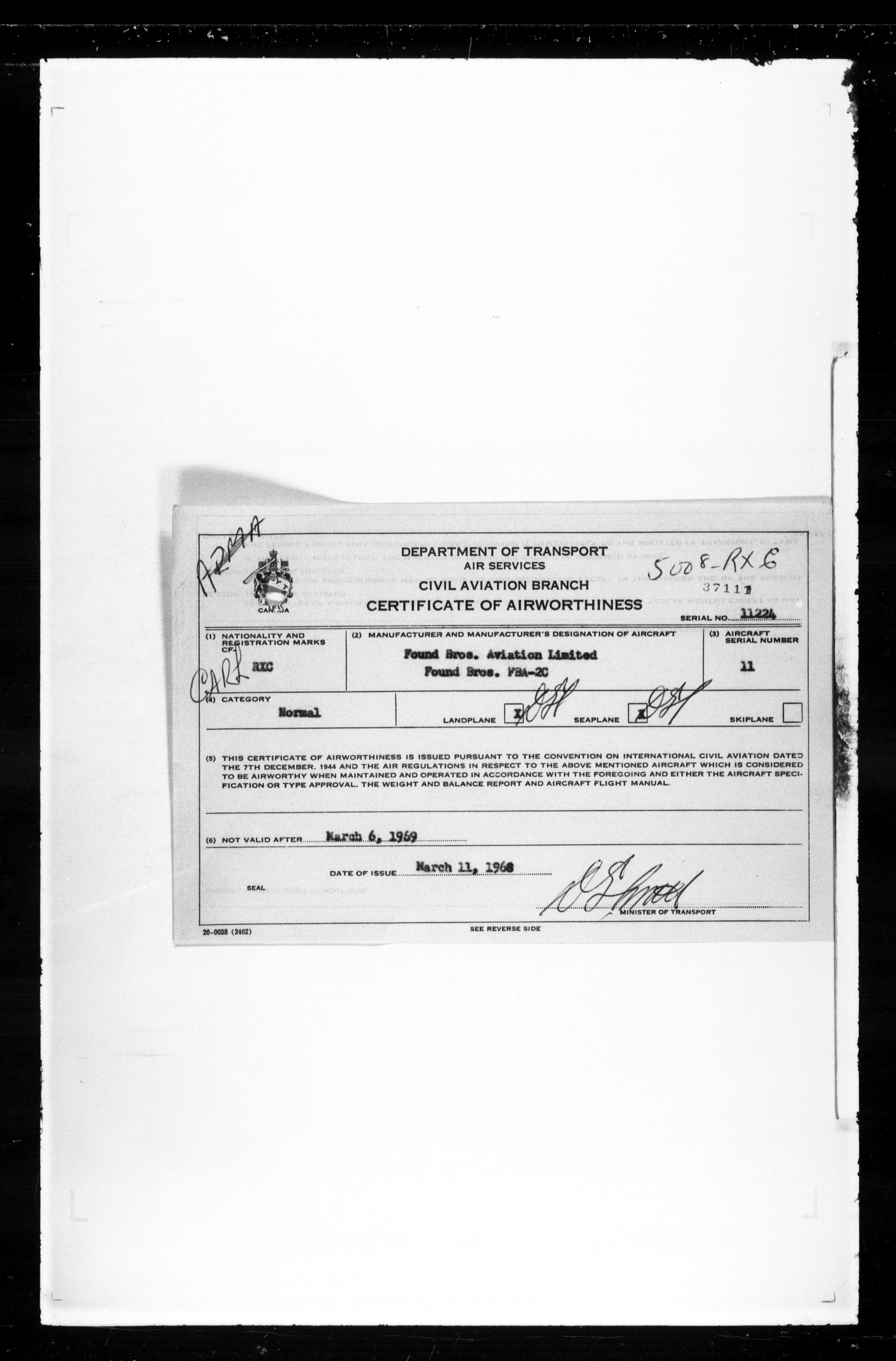 Department of Transport : Civil aircraft registration, inspection and operation files, block 5008, 1920-1986 - 7511