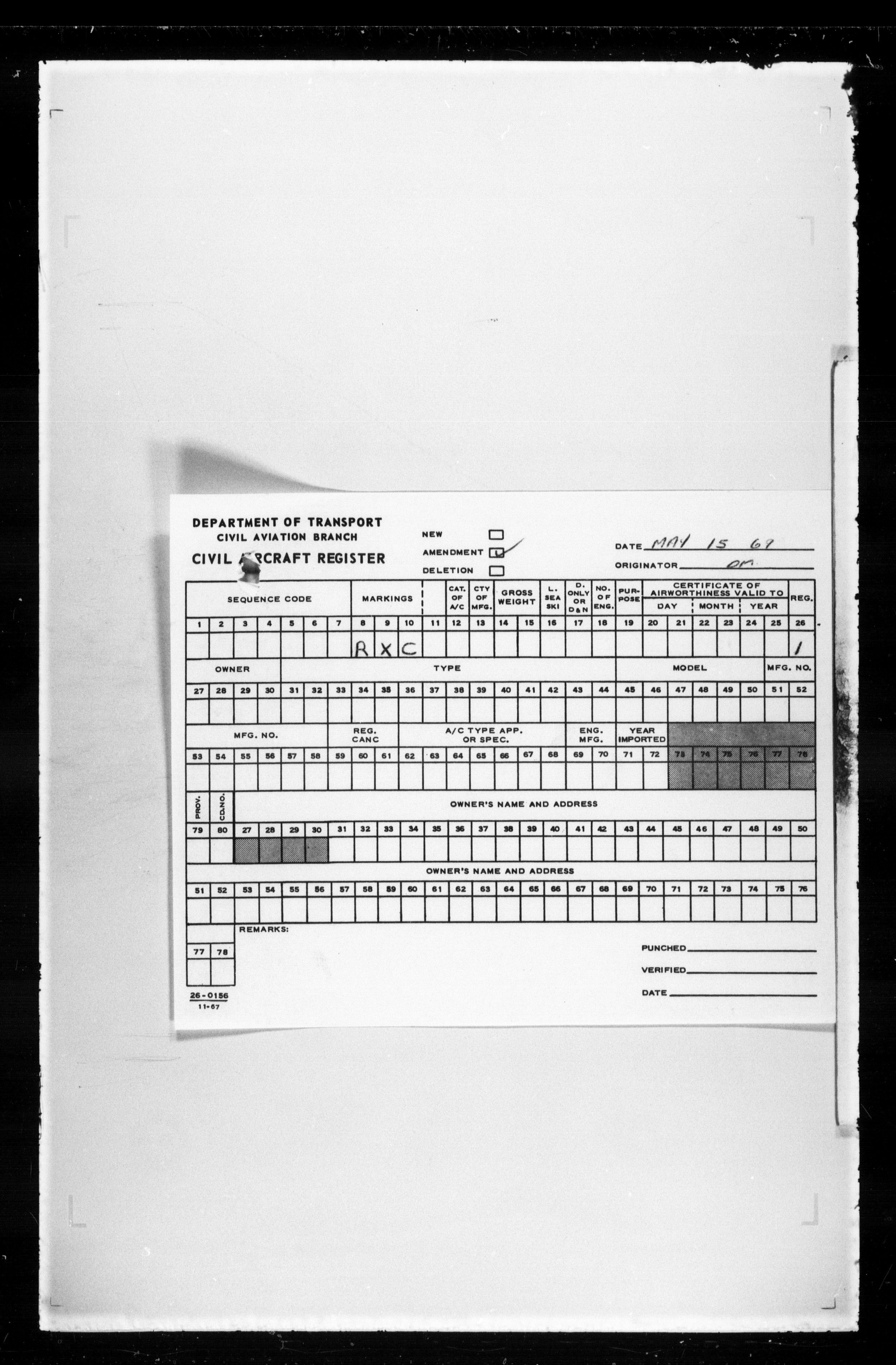 Department of Transport : Civil aircraft registration, inspection and operation files, block 5008, 1920-1986 - 7511