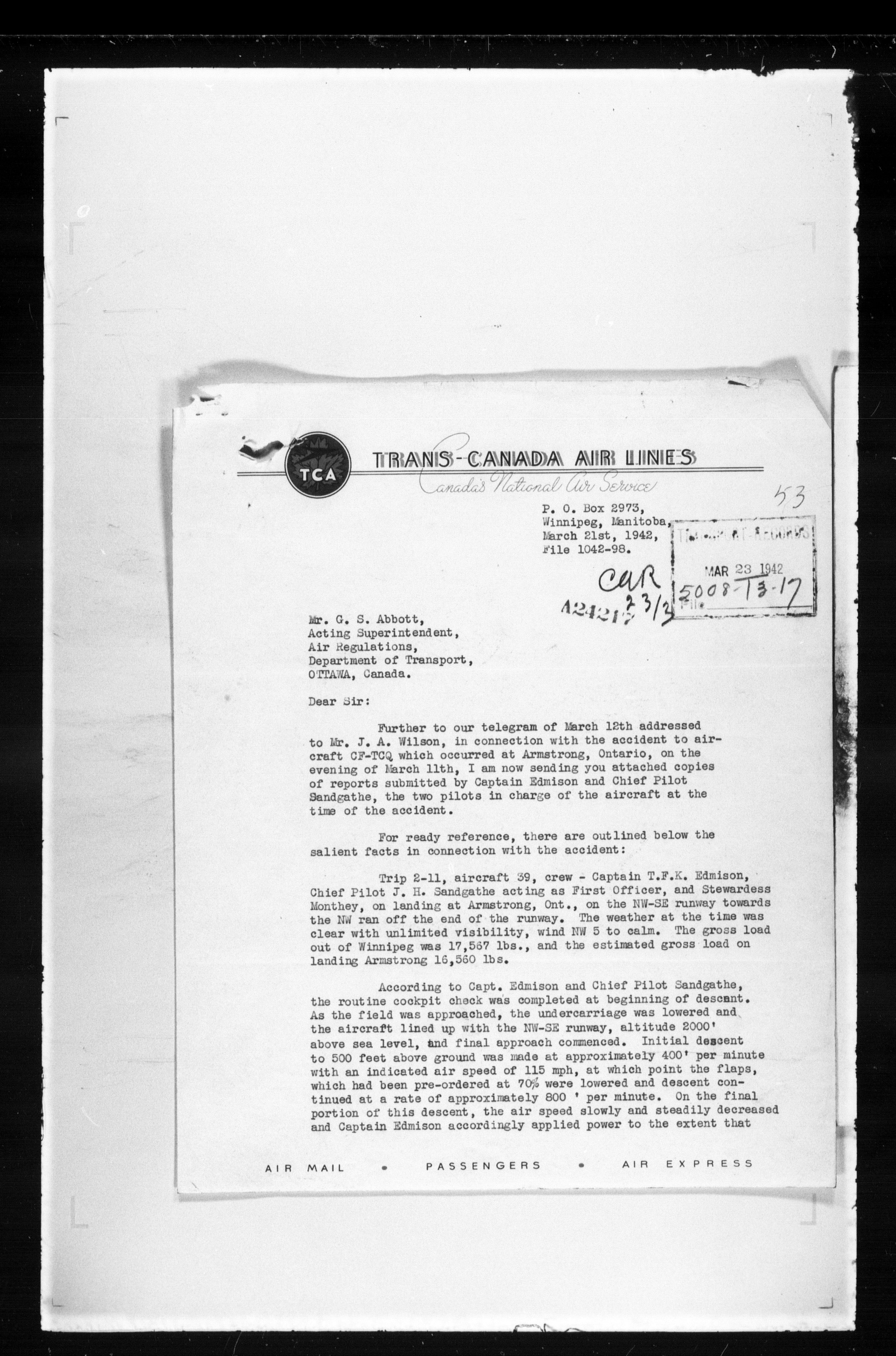 Department of Transport : Civil aircraft registration, inspection and operation files, block 5008, 1920-1986 - 7513