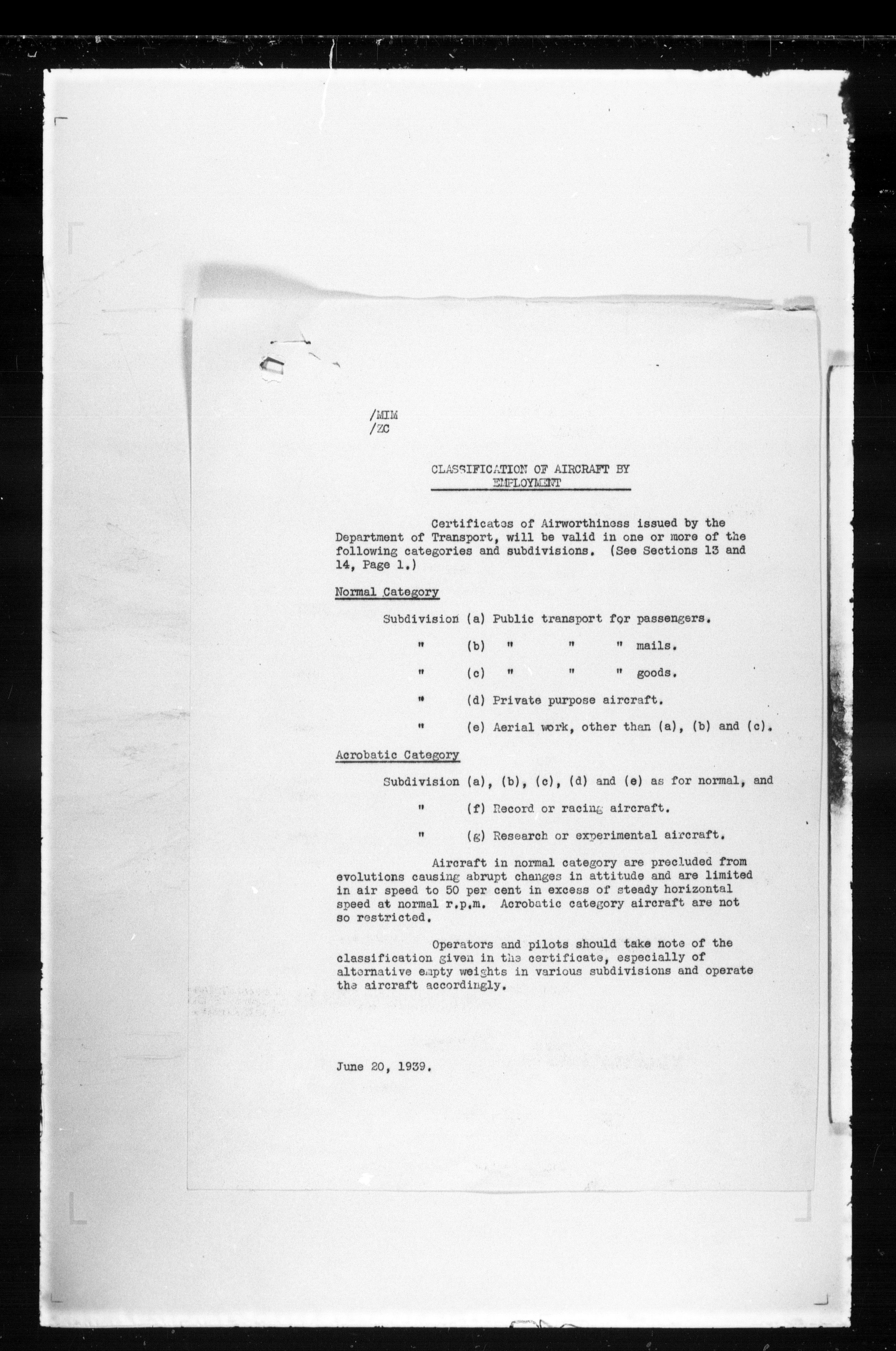 Department of Transport : Civil aircraft registration, inspection and operation files, 1920-1986 : T-7513