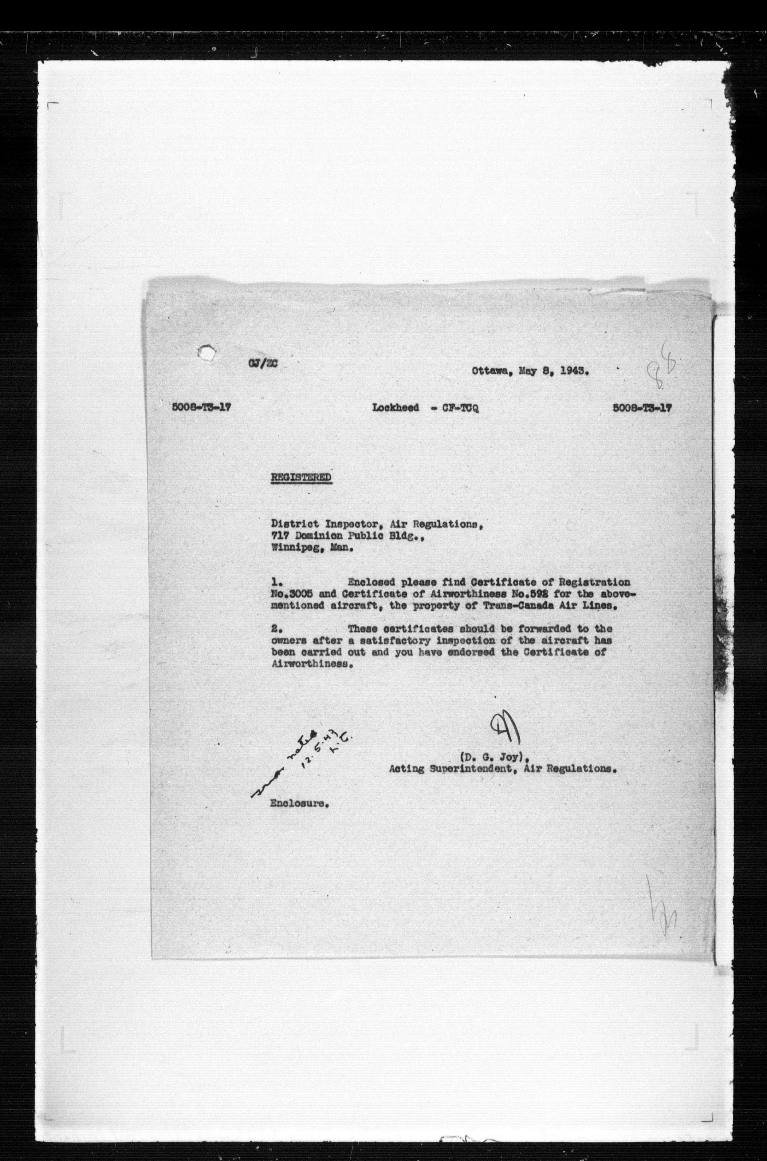 Department of Transport : Civil aircraft registration, inspection and operation files, 1920-1986 : T-7513